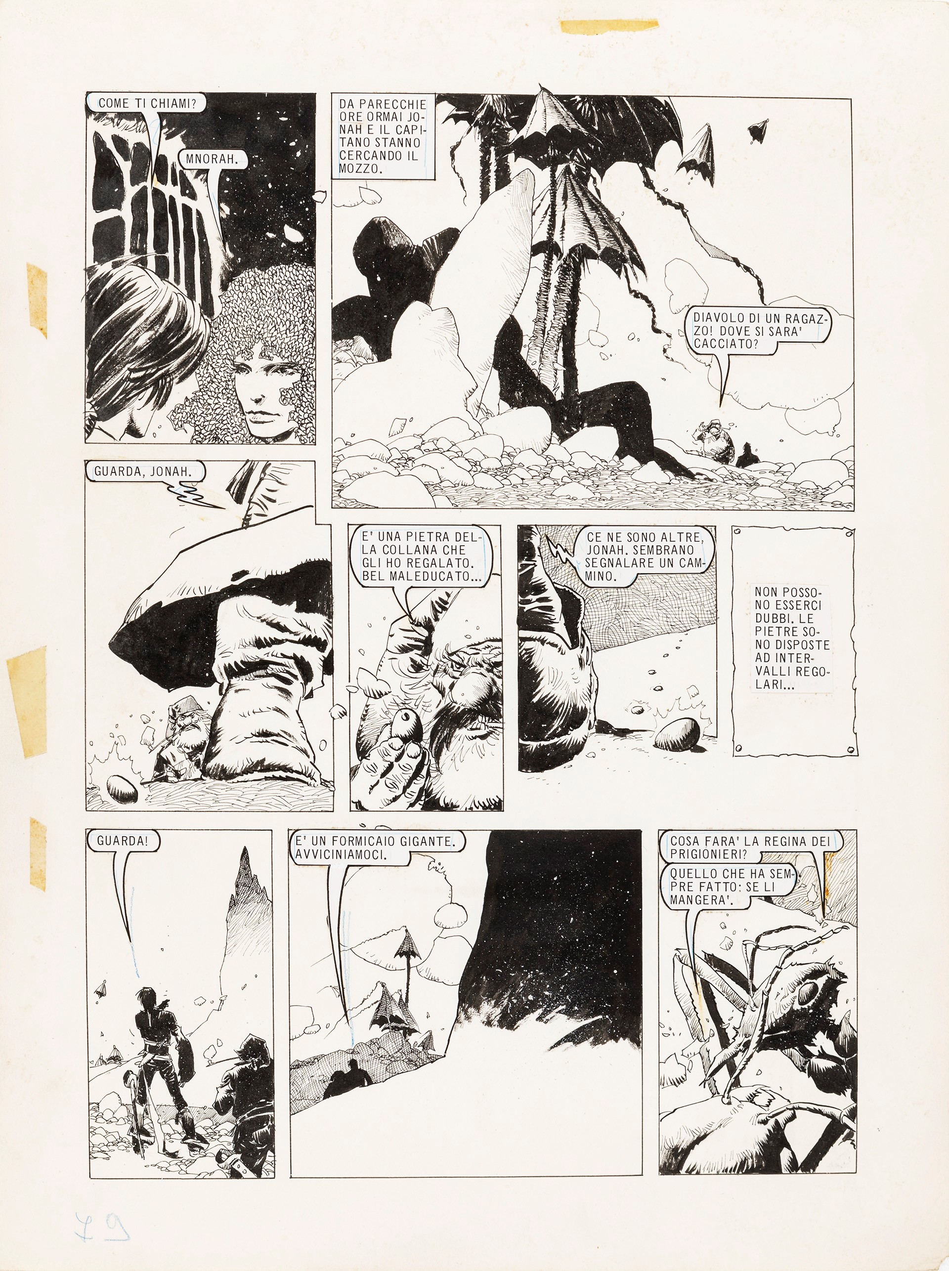 matita e china su cartoncino, 31 x 41,5 cm 1978 Tavola originale realizzata da Breccia per il cap. 7 pag. 5 della celebre saga fantascientifica Robin delle stelle, pubblicata per la prima volta in Italia sulla rivista Lanciostory n. 42 dalla Eura Editoriale nel 1978. Avventura ristampata in Argentin