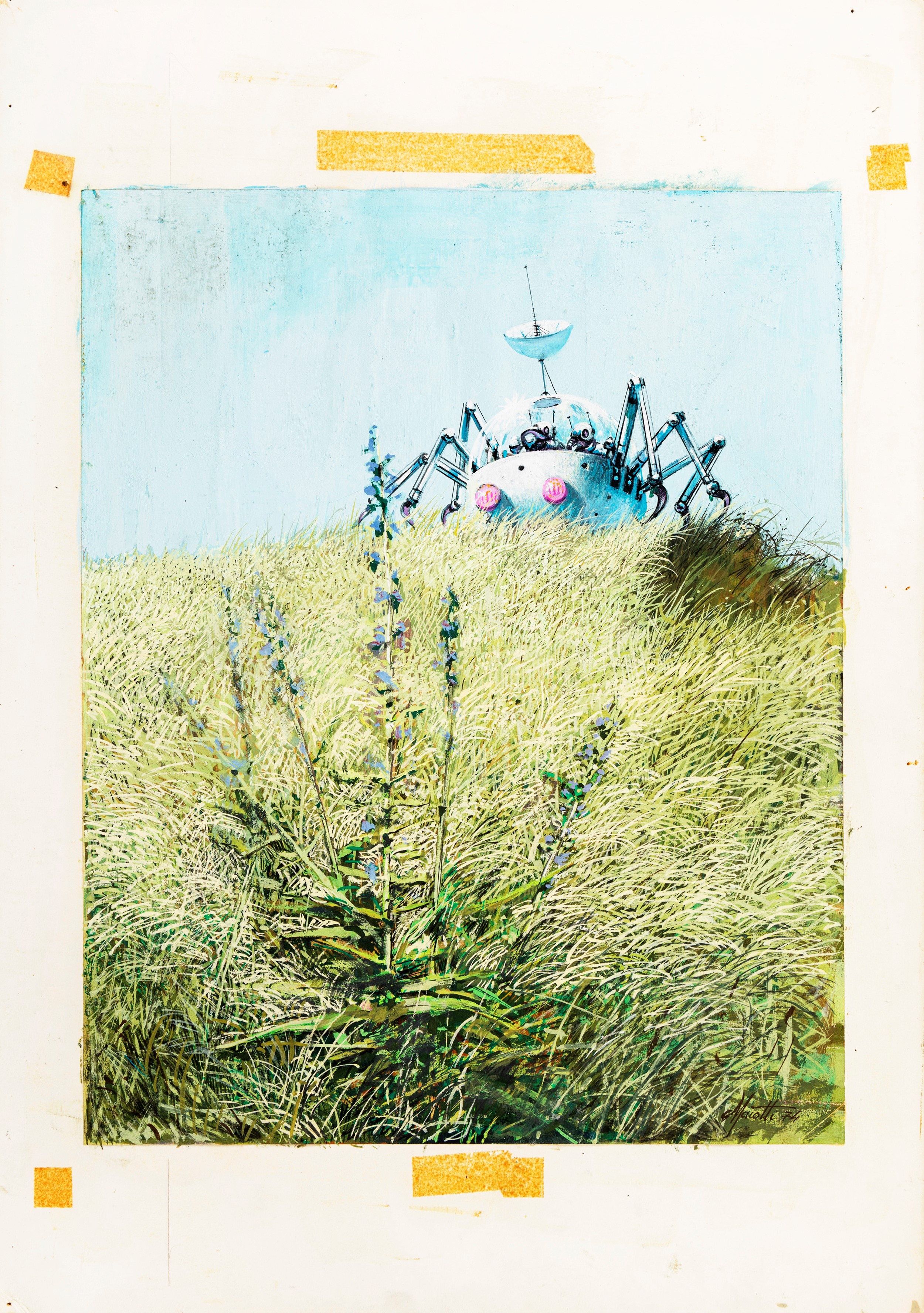 tempera su cartoncino applicato a cartone, 29,5 x 37 cm 1974 Illustrazione originale realizzata da Maiotti nel 1974 e successivamente pubblicata sulla Grande Enciclopedia della Fantascienza, edita dall´Editoriale Del Drago nel 1980/1981. Firmata e datata.