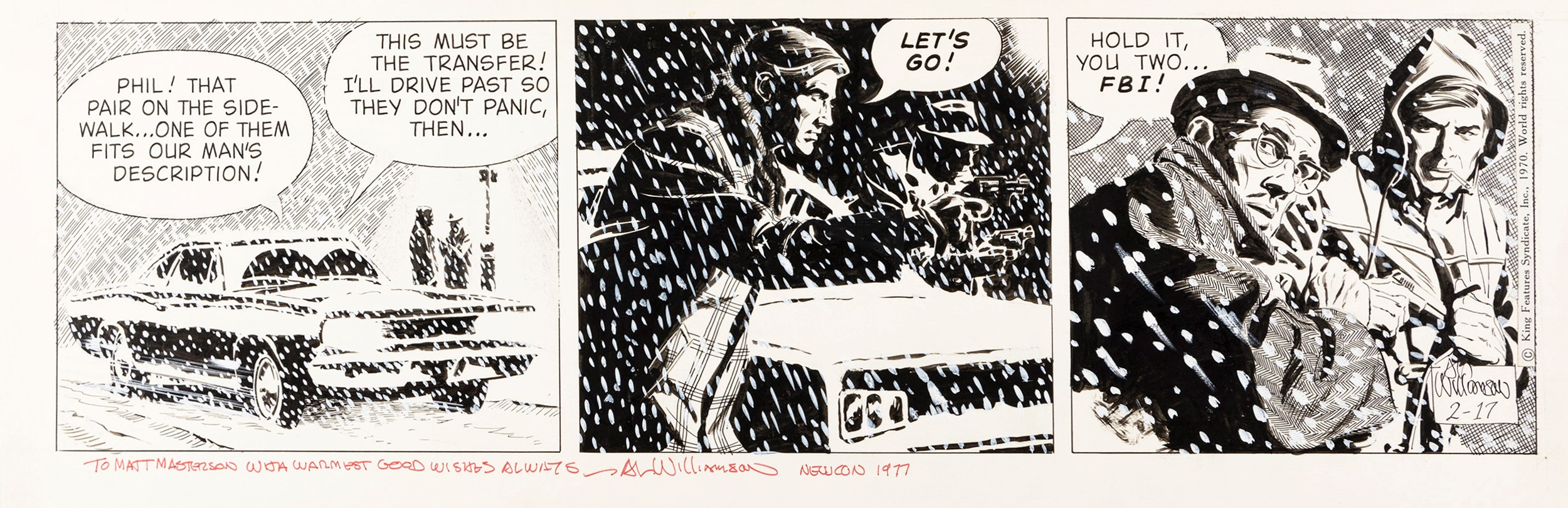 1970 Striscia giornaliera del 17/02/1970 per Secret Agent Corrigan. Firmata, datata e dedicata.