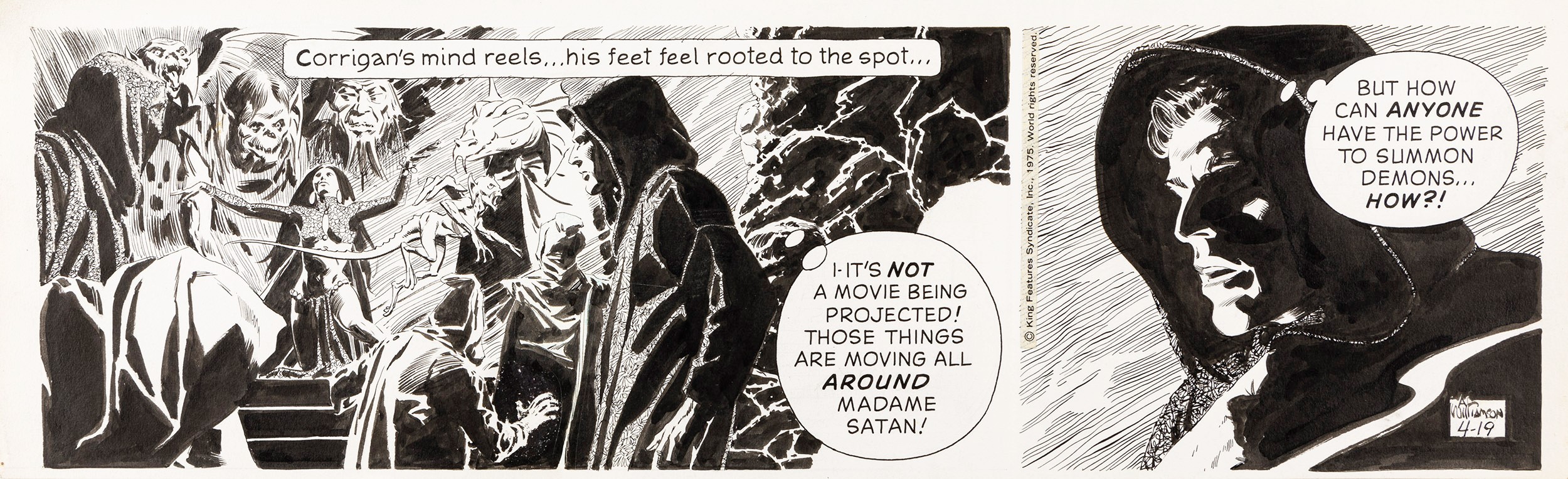 1975 Striscia giornaliera del 19/04/1975 per Secret Agent Corrigan. Firmata e datata.