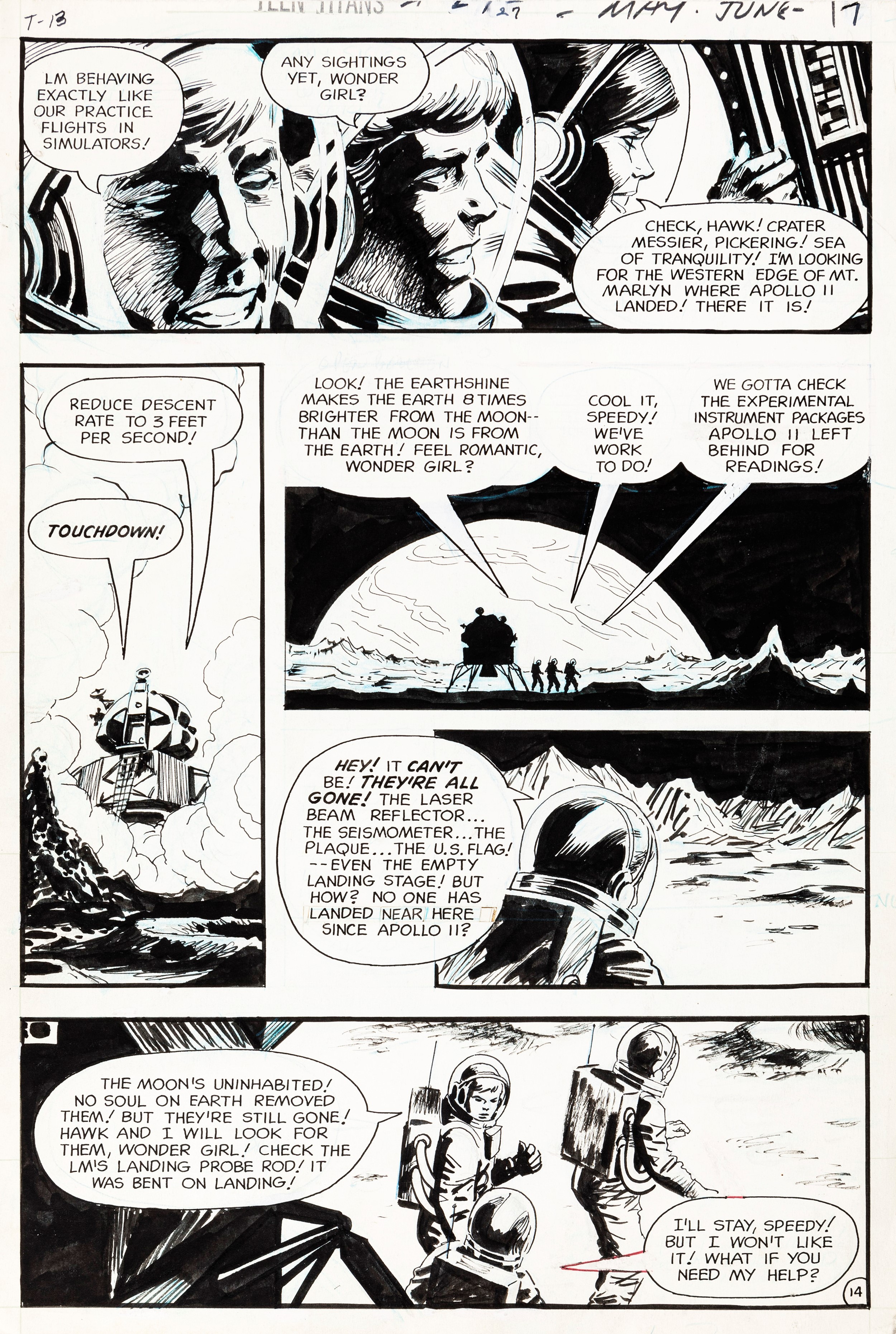 1970 Tavola originale realizzata da Cardy per Nightmare in Space!, edita su Teen Titans n. 27 a pag. 14 dalla DC nel 1970.
