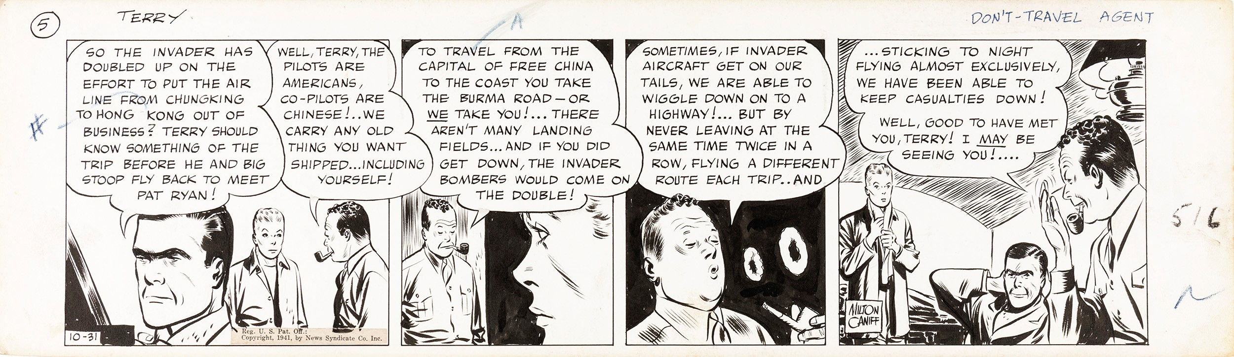 1941 Striscia giornaliera del 31/10/1941 per Terry and the Pirates. Firmata e datata.