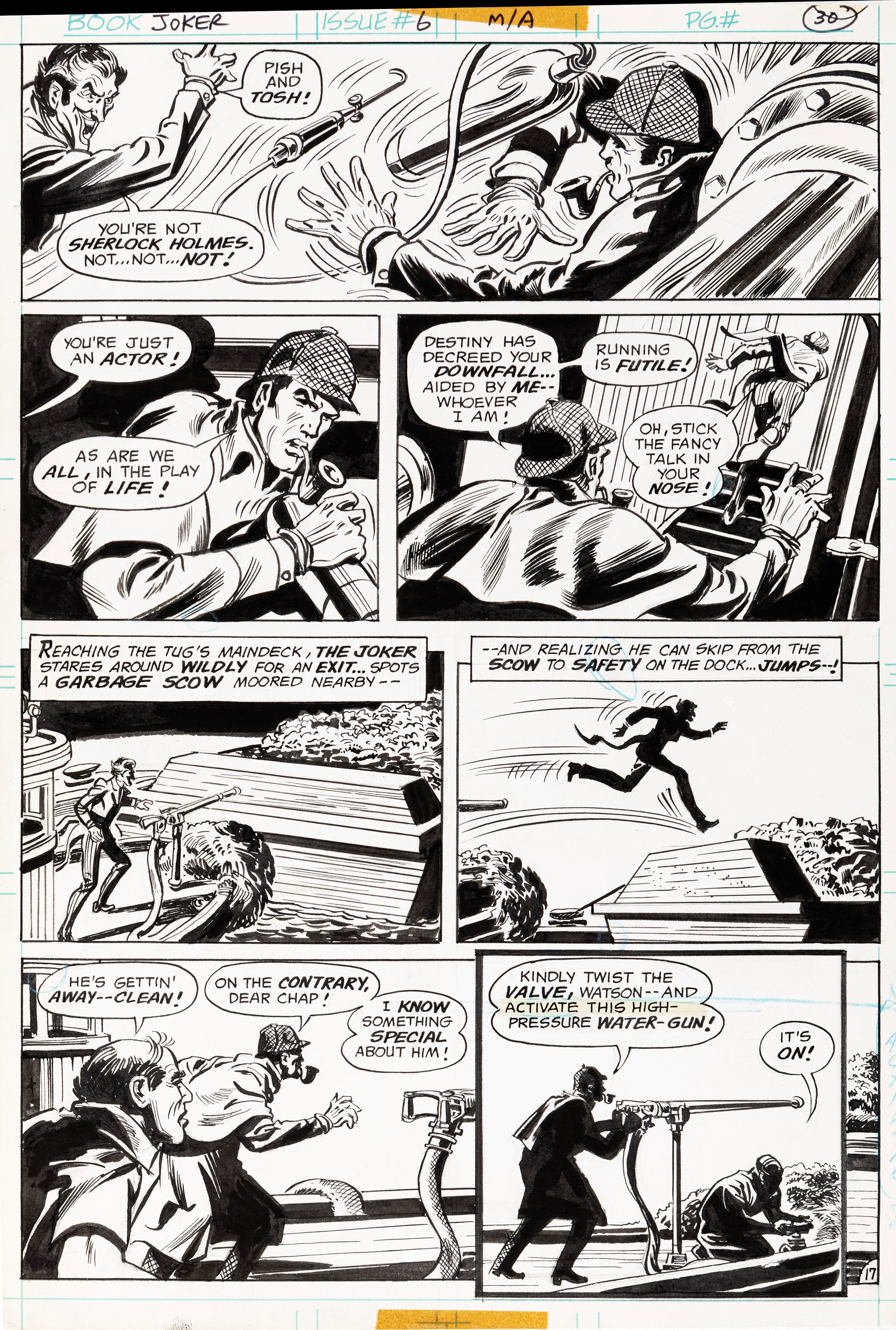 1976 Tavola originale realizzata da Novick per Sherlock Stalks the Joker!, edita su The Joker n. 6 a pag. 17 dalla DC nel 1976.