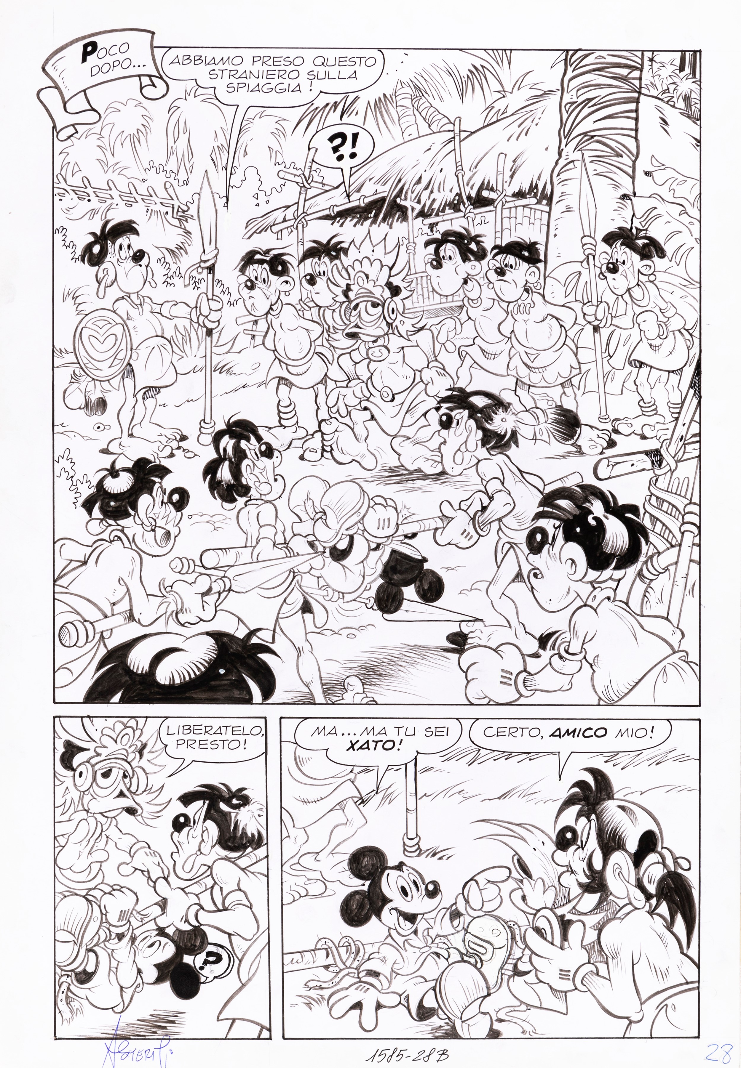 1986 Tavola originale per Topolino e il tesoro dei Caraibi, edita su Topolino n. 1585 a pag. 28 nell'Aprile 1986. Firmata.