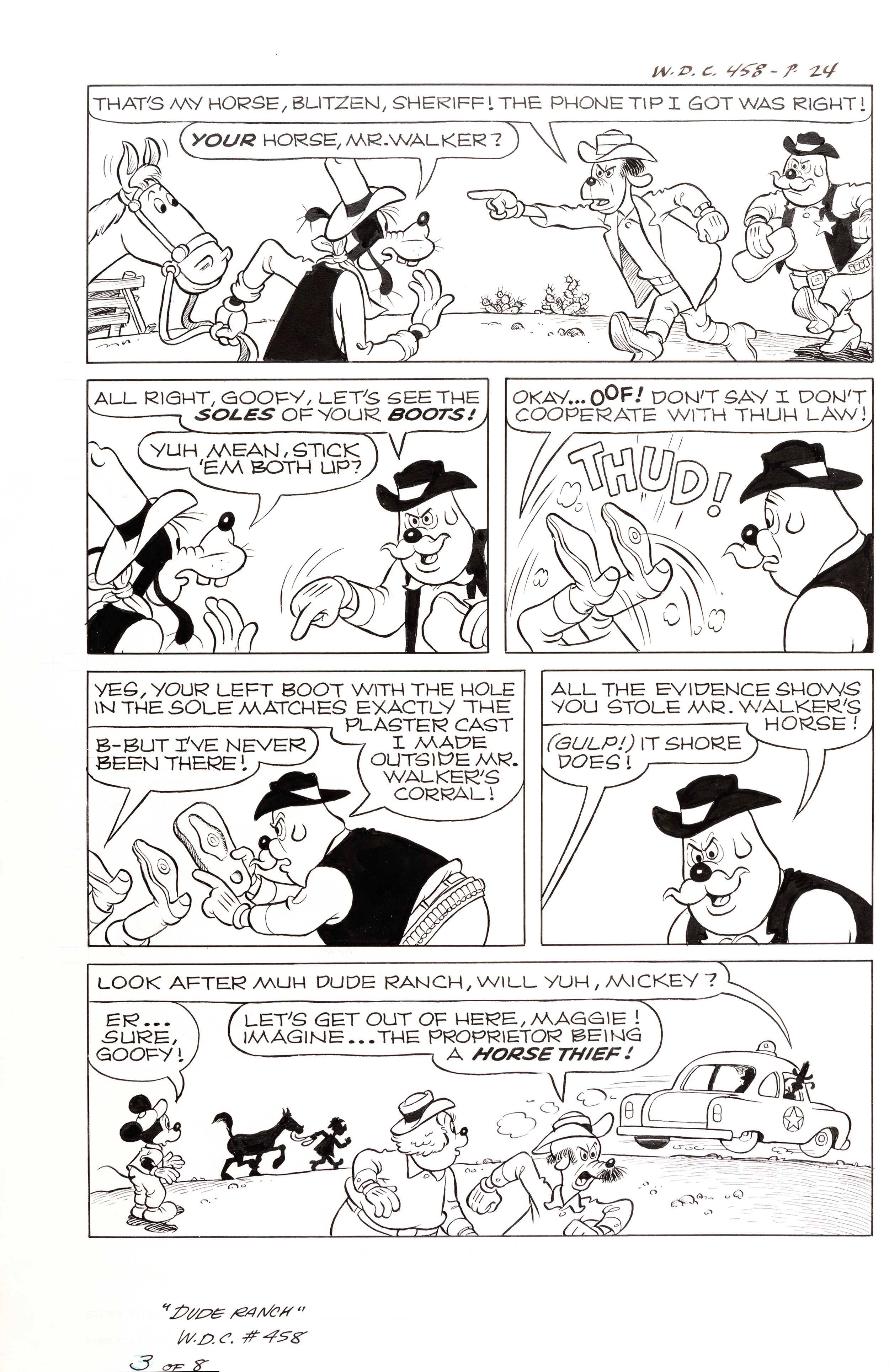 matita e china su cartoncino, 36 x 53,5 cm 1978 Tavola originale realizzata da Murry per Dude Ranch, pubblicata per la prima volta negli USA su Walt Disney‘s Comics and Stories n. 458 nel 1978 e successivamente in Italia su Topolino n. 1318 nel 1981.