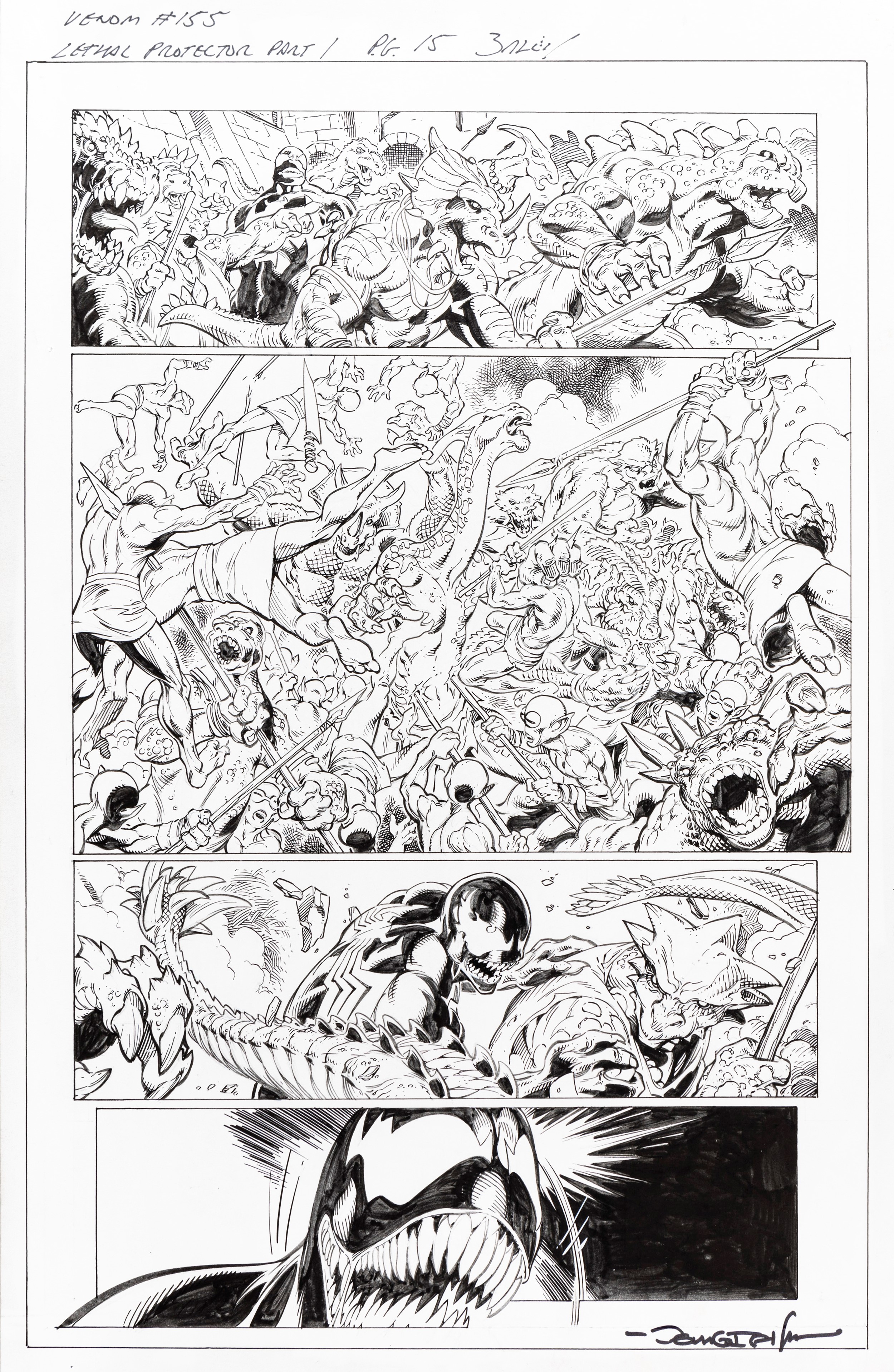 2017 Tavola originale realizzata da Bagley per Lethal Protector, edita su Venom n. 155 a pag. 15 dalla Marvel nel 2017. Firmata.
