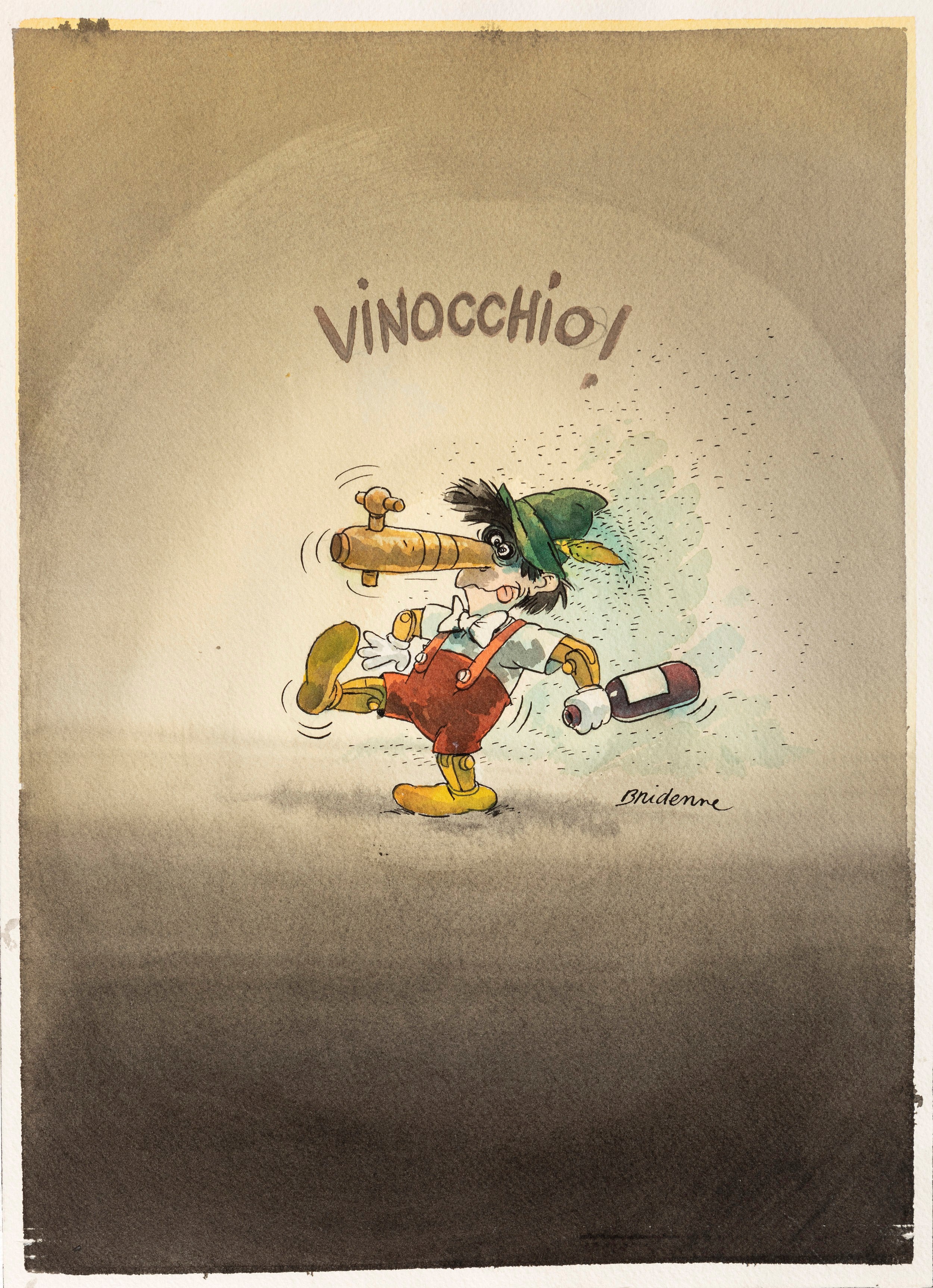china e acquerello su cartoncino, 26 x 36 cm 1991 Illustrazione originale realizzata da Bridenne in occasione della mostra Pinocchio dal mondo, tenutasi a Padova tra l'Aprile e il Giugno del 1991, pubblicata sull´omonimo catalogo a pag. 34 dalla Editoriale Programma. Firmata.