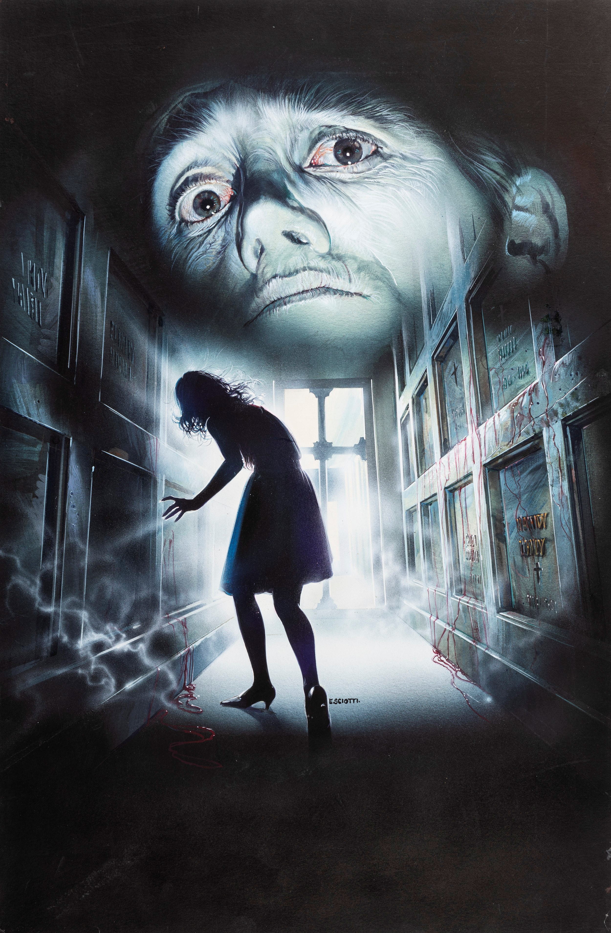 1991 Bozzetto originale realizzato da Sciotti per la locandina ufficiale del film Voci dal profondo, diretto da Lucio Fulci con Duilio Del Prete, Karina Huff e Bettina Giovannini nel 1991. Firmato.