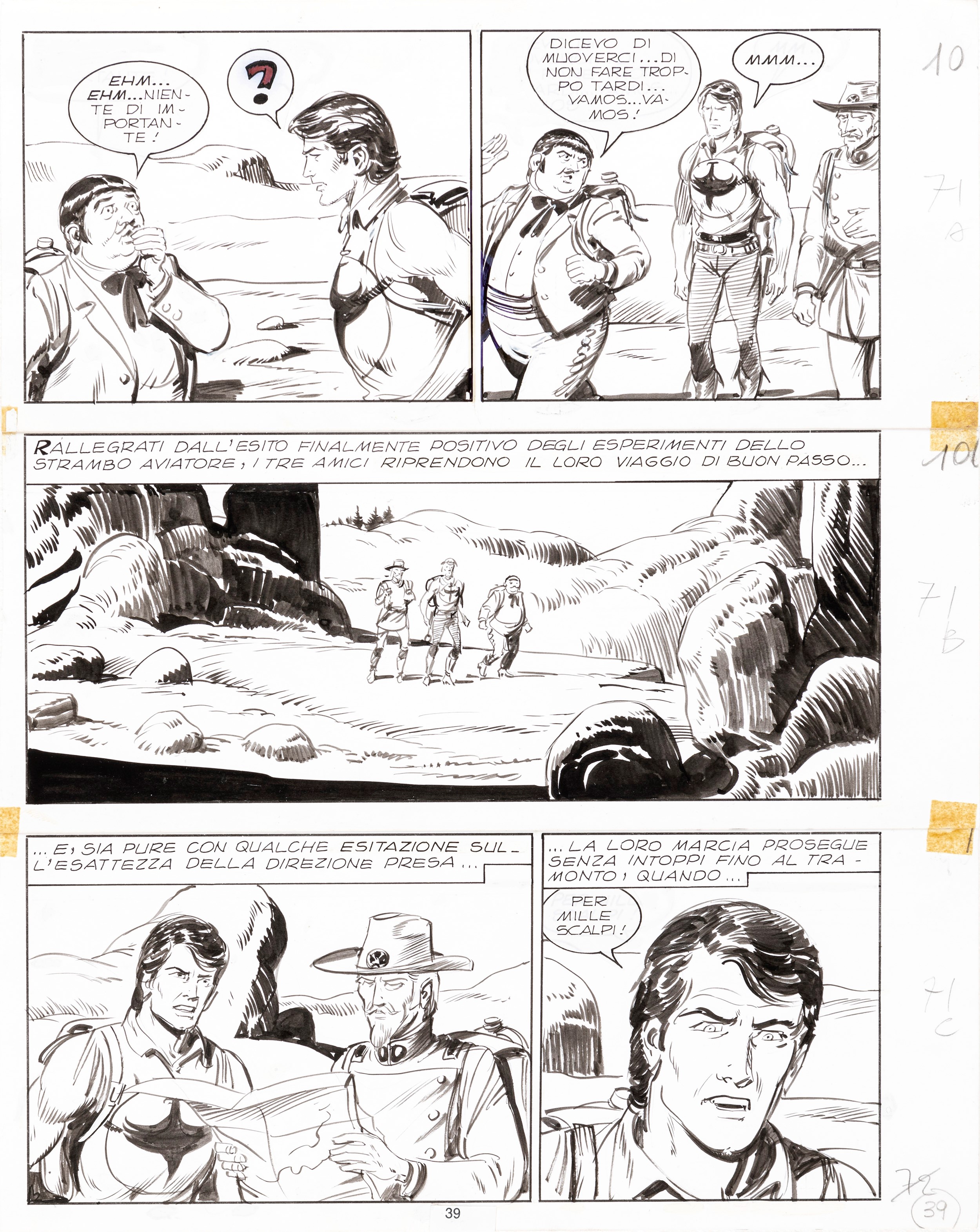 1980 Tavola originale realizzata da Ferri per Hellingen!, edita su Zagor n. 179 a pag. 39 dalla Bonelli nel 1980. Su tre pannelli.