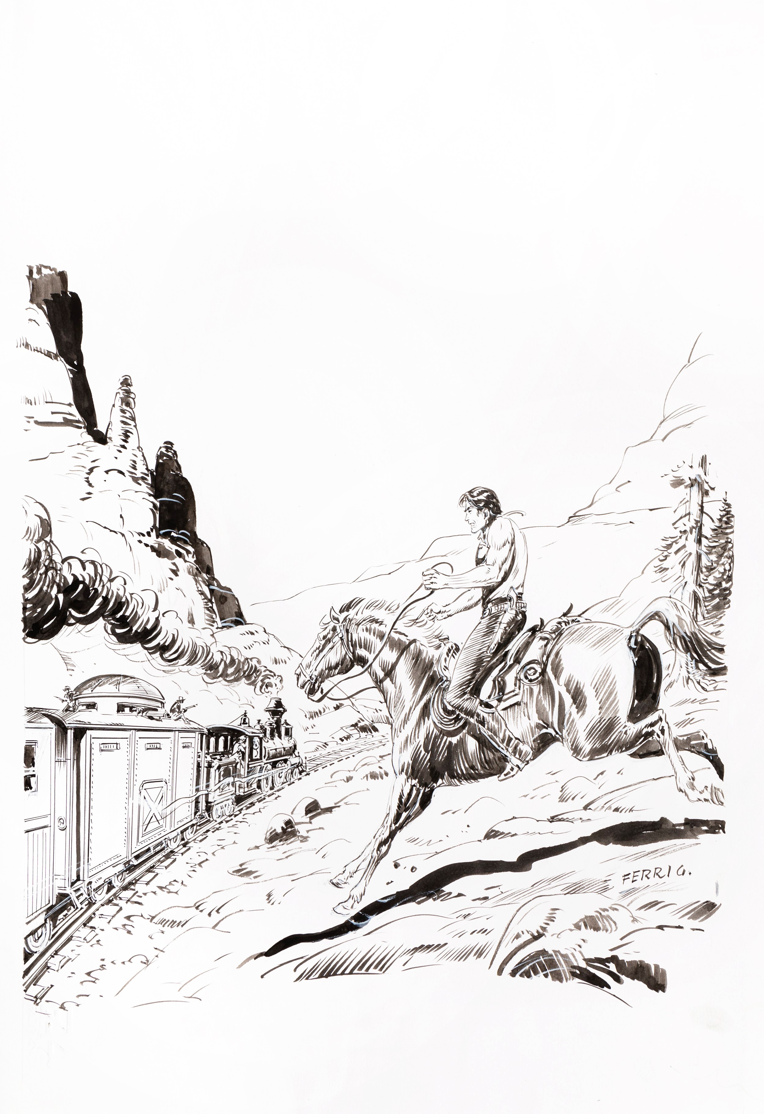 2006 Originale di copertina realizzato da Ferri per Il vagone blindato, edito su Zagor n. 494 dalla Bonelli nel 2006. Firmato.
