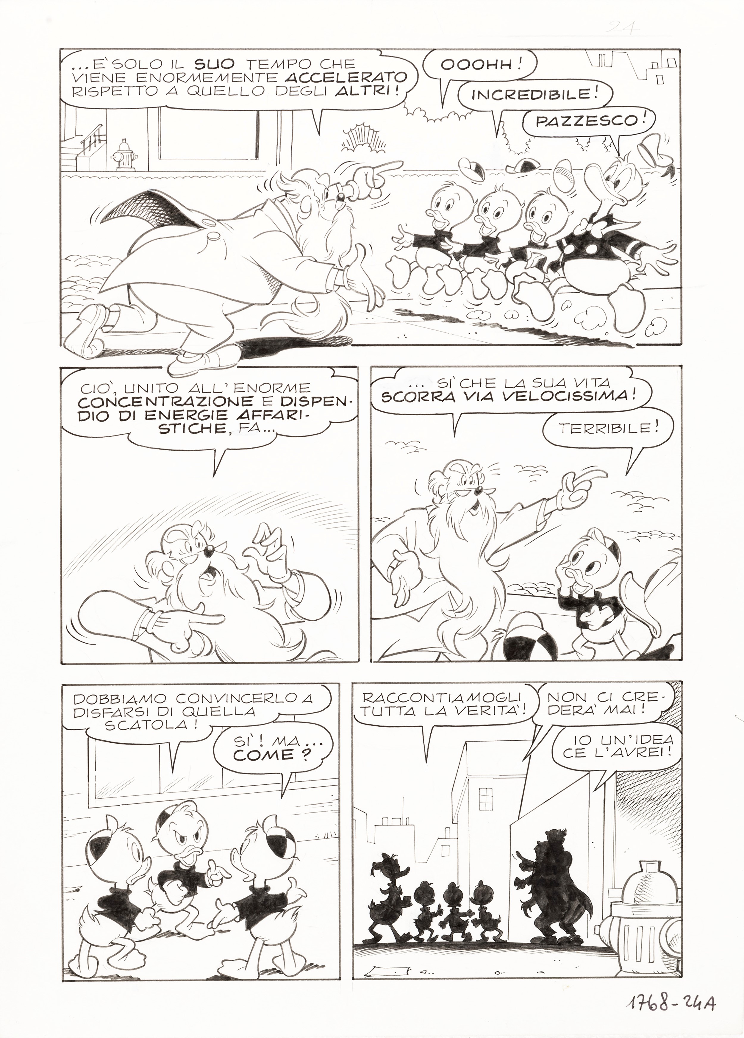 1989 Tavola originale realizzata da Dalla Santa per Zio Paperone e la scatola del tempo, edita su Topolino n. 1768 a pag. 24 nell'Ottobre 1989.