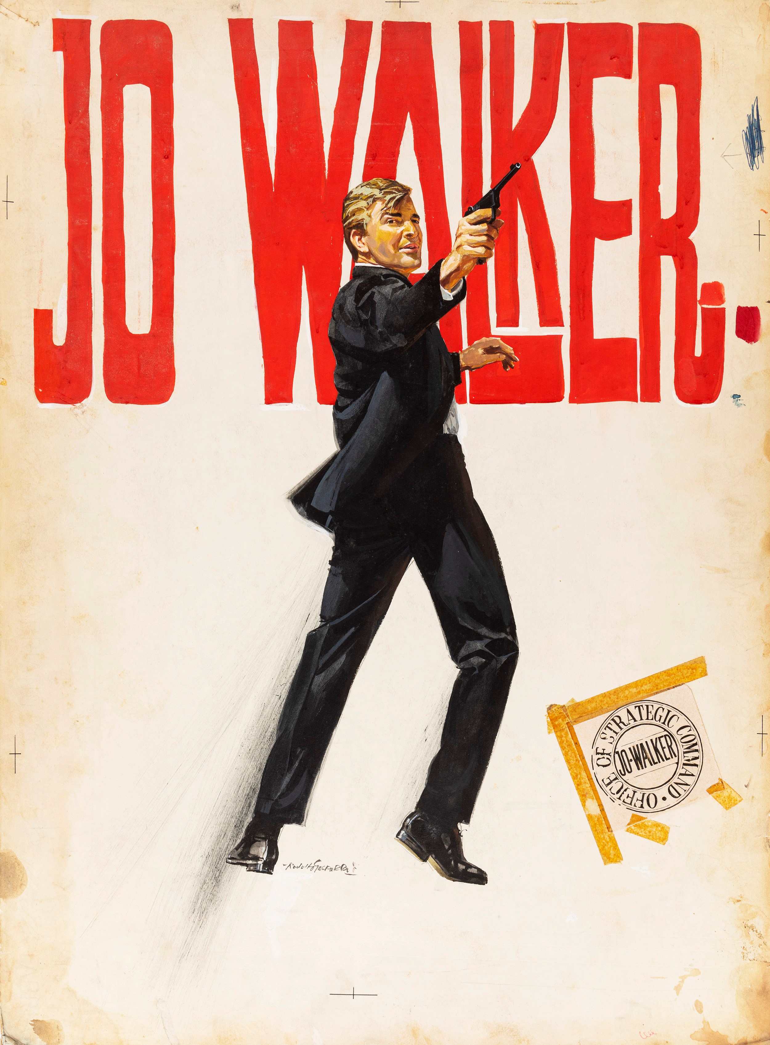 tempera su cartone, 48 x 65,5 cm 1966 Bozzetto originale realizzato da Gasparri per la locandina ufficiale del film Agente Jo Walker: Operazione Estremo Oriente, diretto da Frank Kramer (Gianfranco Parolini) con Tony Kendall, Brad Harris e Barbara Frey nel 1966. Tracce di umidità ai margini con pieghe agli angoli e piccoli strappi. Firmato.