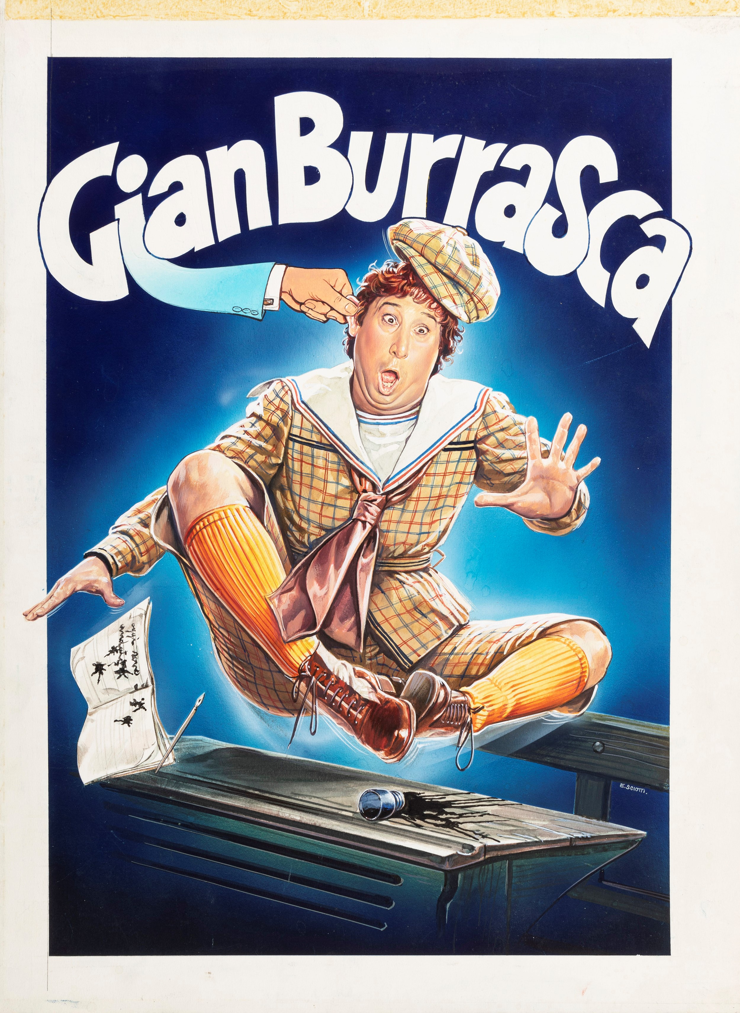 1982 Bozzetto originale realizzato da Sciotti per la locandina ufficiale del film Gian Burrasca, diretto da Pier Francesco Pingitore con Alvaro Vitali, Mario Carotenuto e Gigi Reder nel 1982. Firmato.