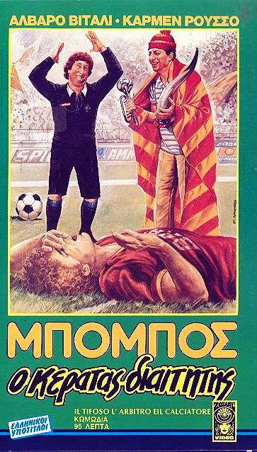 tempera su cartone, 36,5 x 51 cm 1982 Bozzetto originale realizzato da Spataro per la locandina ufficiale del film Il tifoso, l'arbitro e il calciatore, diretto da Pier Francesco Pingitore con Alvaro Vitali, Pippo Franco e Carmen Russo nel 1982. Firmato.