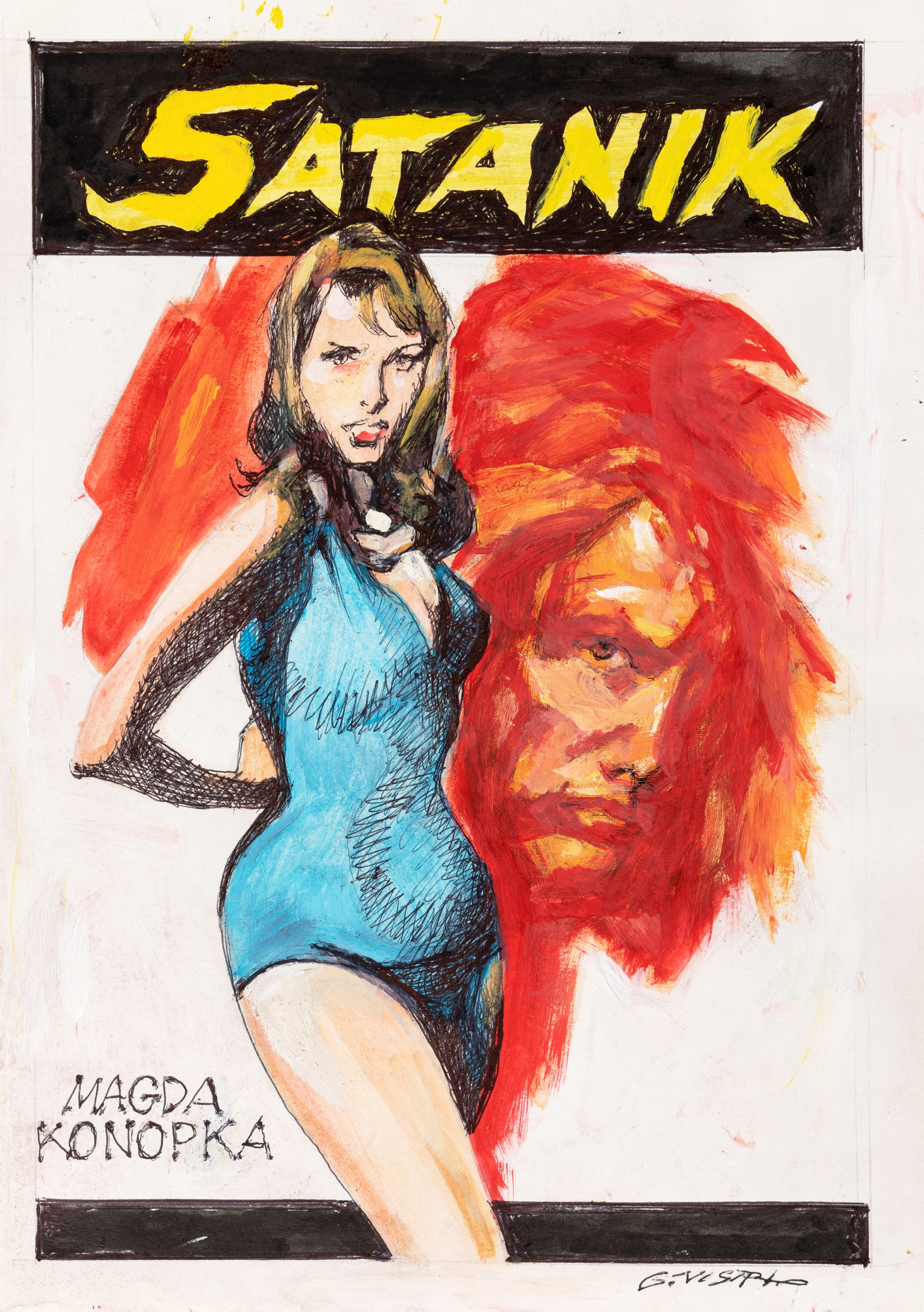 1968 Bozzetto preliminare realizzato da Giuliano Nistri per la locandina ufficiale del film Satanik, diretto da Piero Vivarelli con Magda Konopka e Julio Pena nel 1968. Firmato.