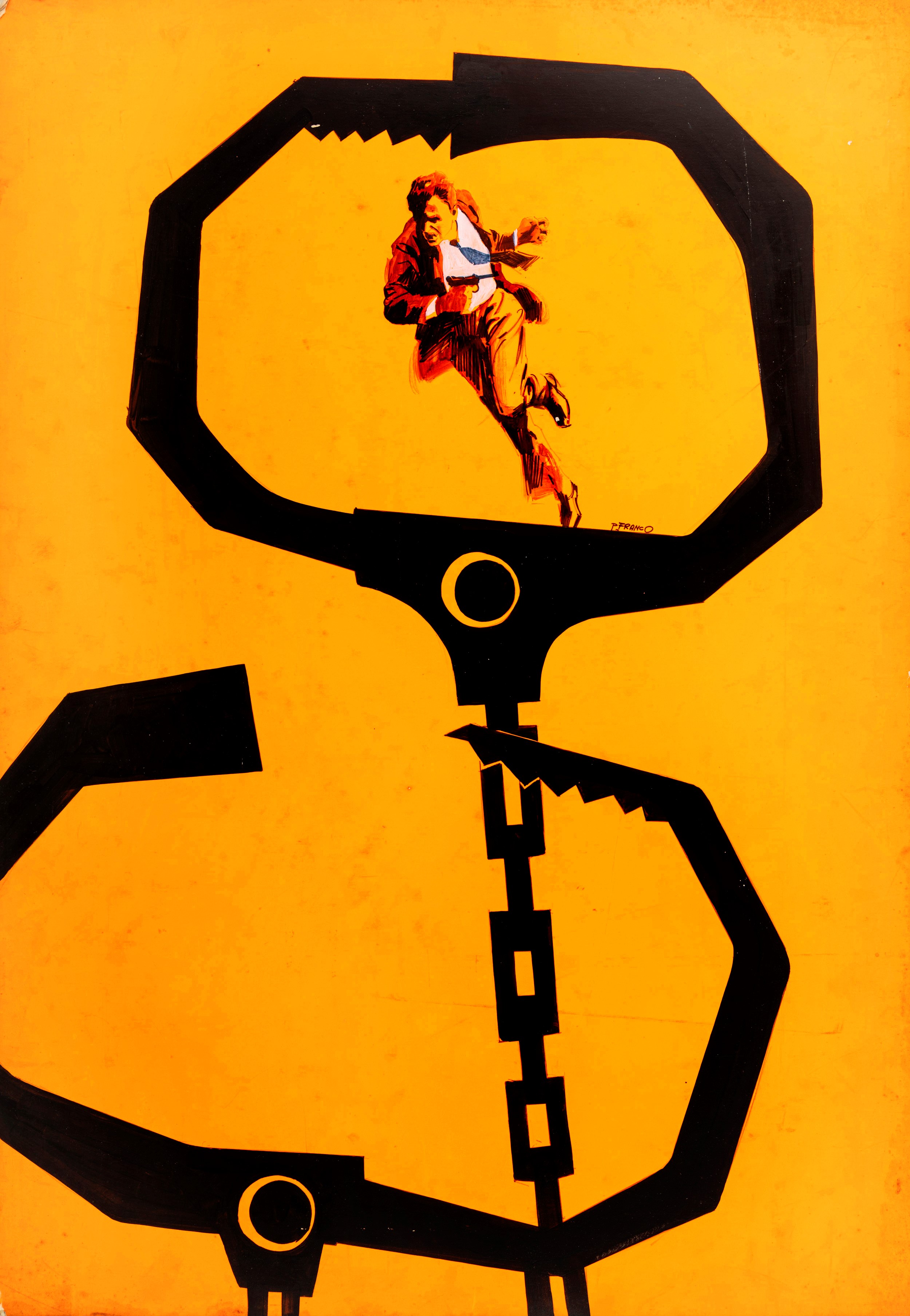 anni '70 Bozzetto originale realizzato per la locandina di un film poliziesco con Lino Ventura degli anni '70. Lievi abrasioni ai margini. Firmato.