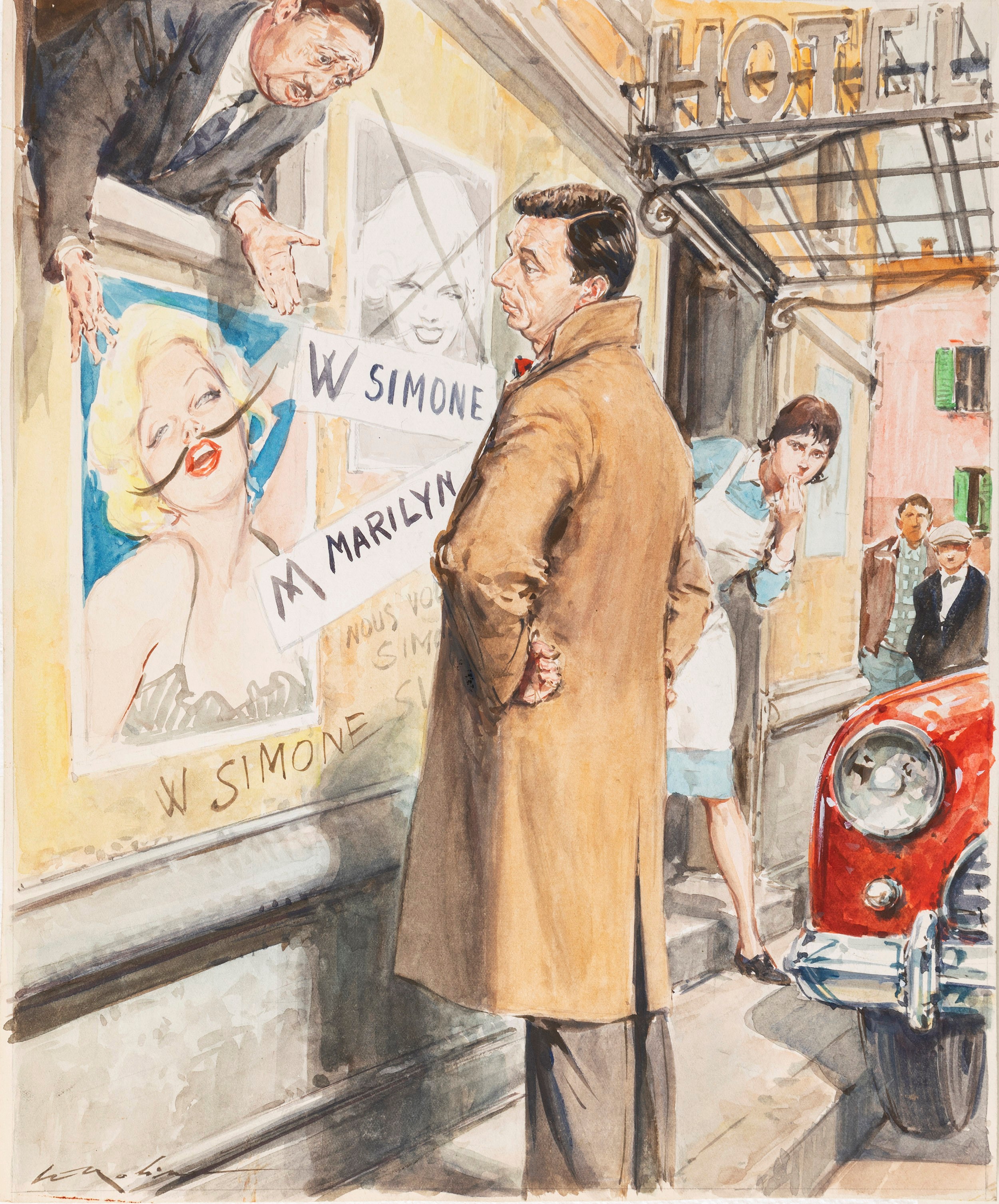 Walter Molino : Yves Montand e Marilyn Monroe  - Asta Fumetti: tavole e illustrazioni originali - Associazione Nazionale - Case d'Asta italiane