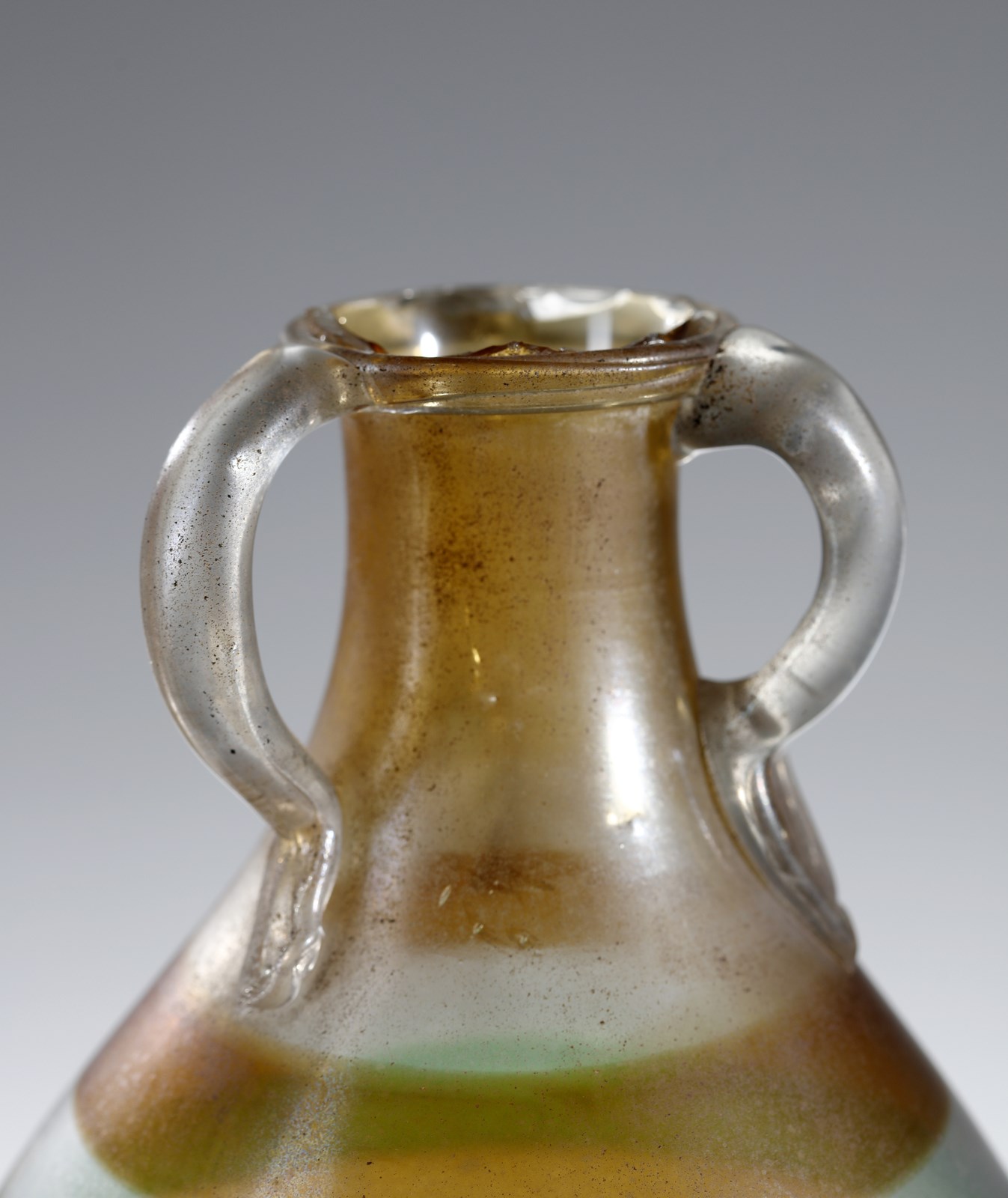 attribuito. Vaso in vetro trasparente a superficie acidata decorato con fasce mu [..]