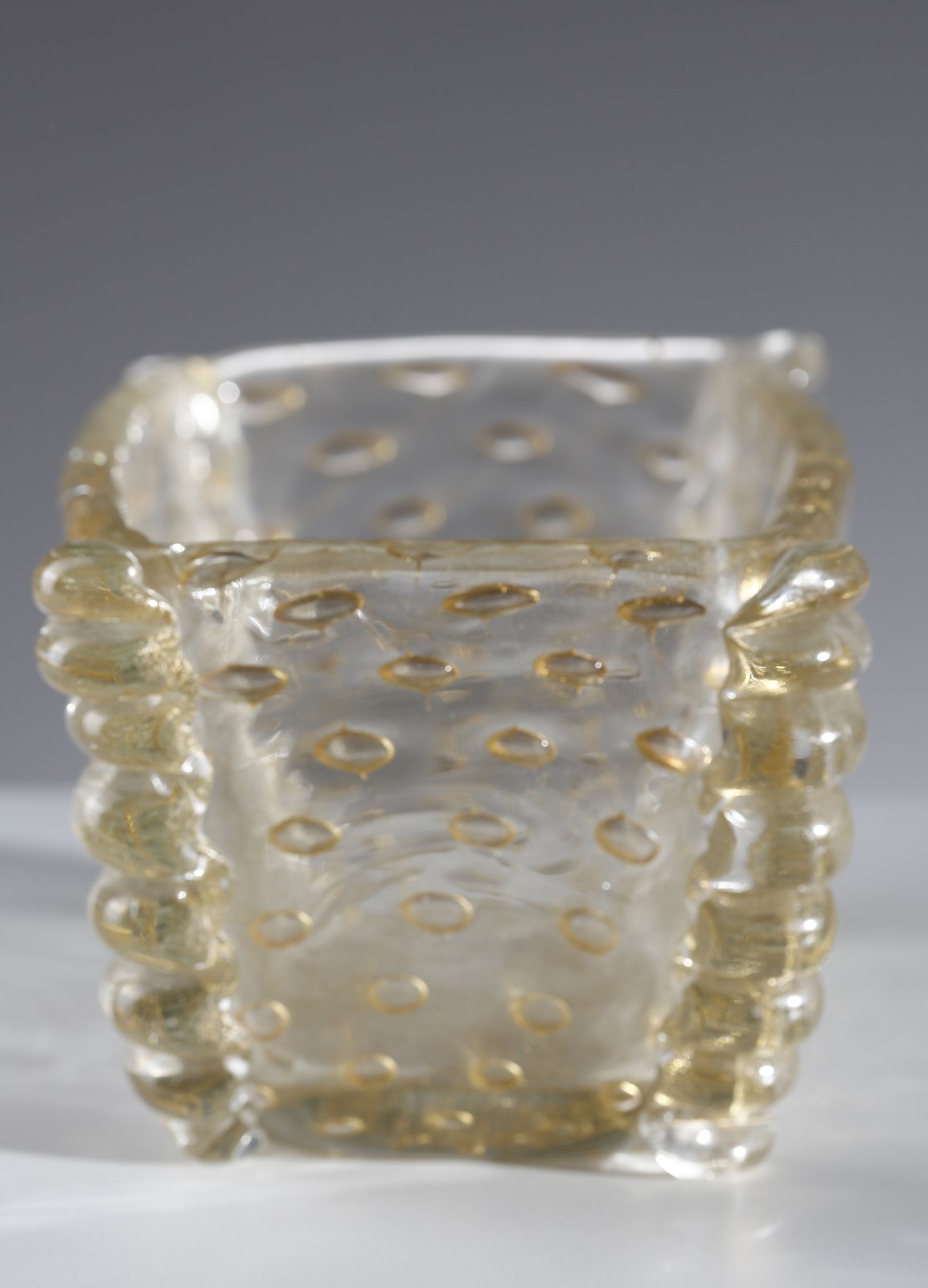 Centrotavola in vetro trasparente decorato a bolle regolari e foglia oro, morise [..]