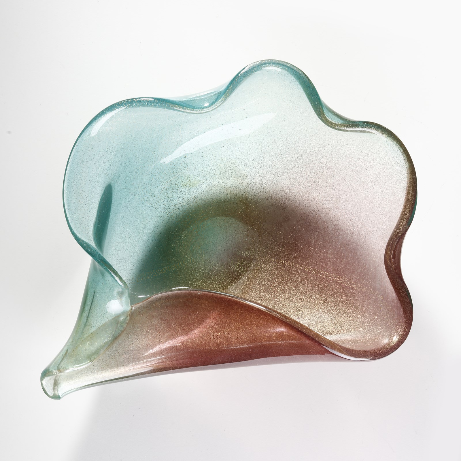 Ciotola della serie Polveri in vetro trasparente azzurrino rosso e foglia oro