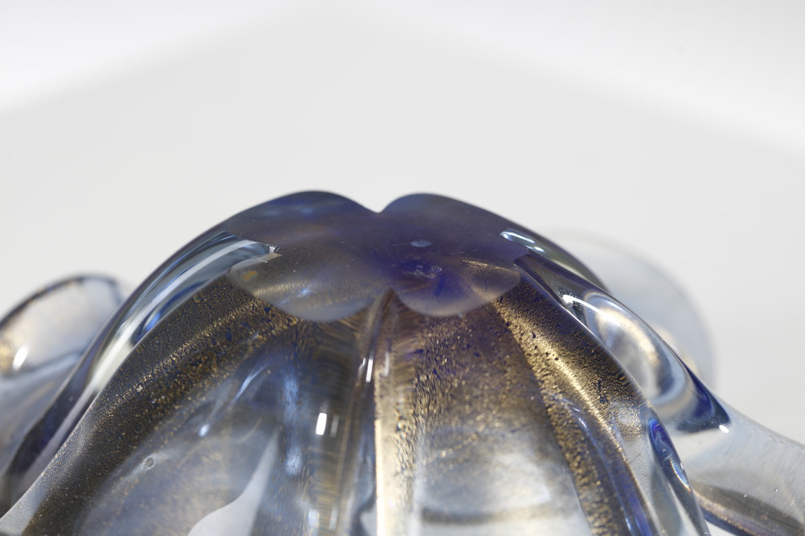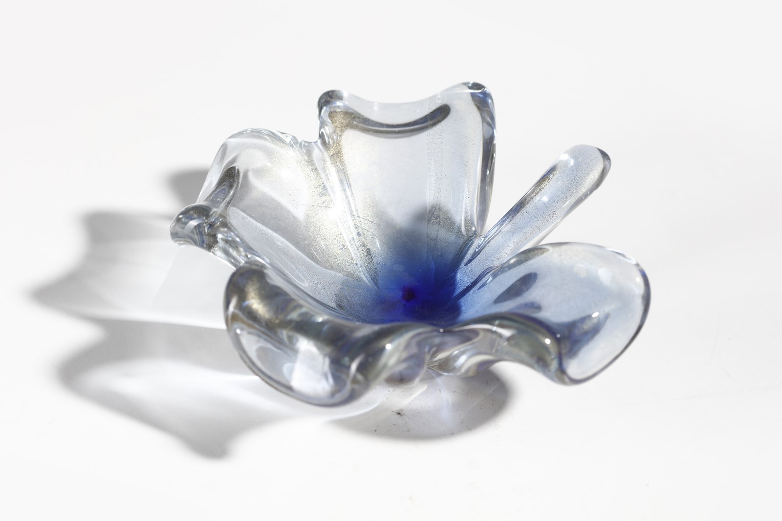 Coppa a forma di foglia in vetro trasparente azzurrino e foglia oro