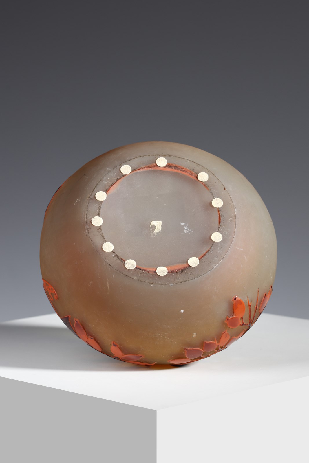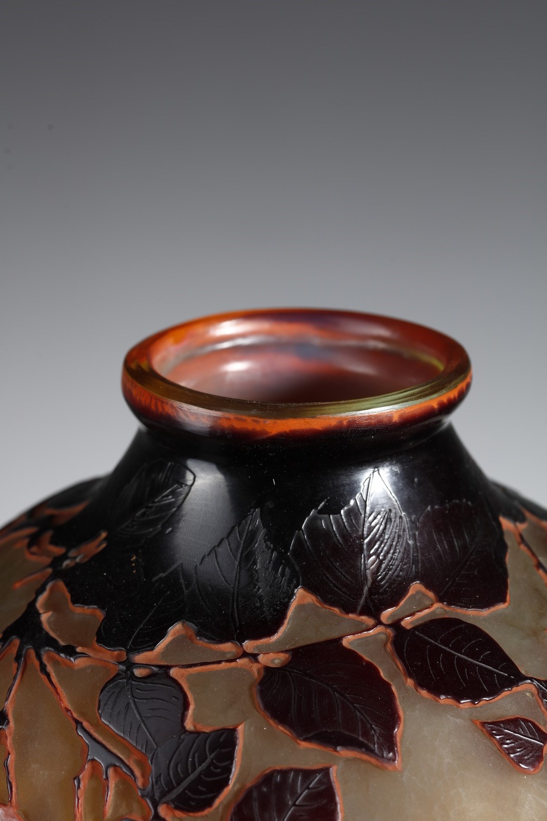 Vasetto in vetro doppio decoro vegetale nei toni del marrone e arancio finemente [..]
