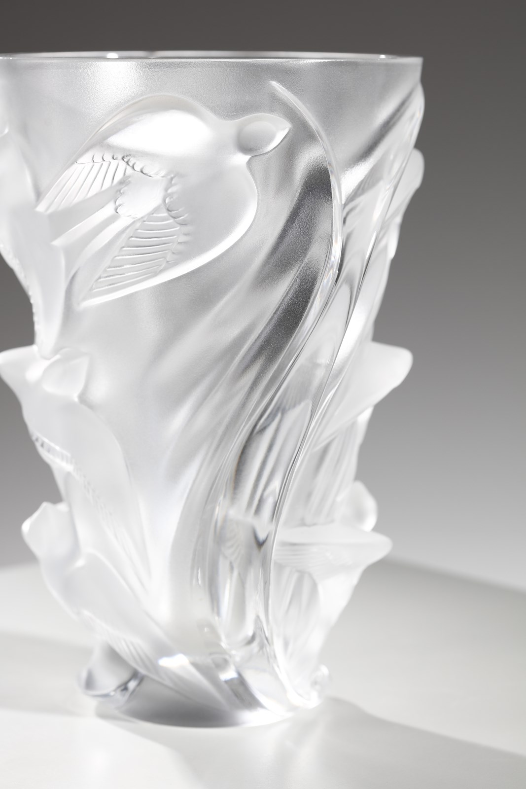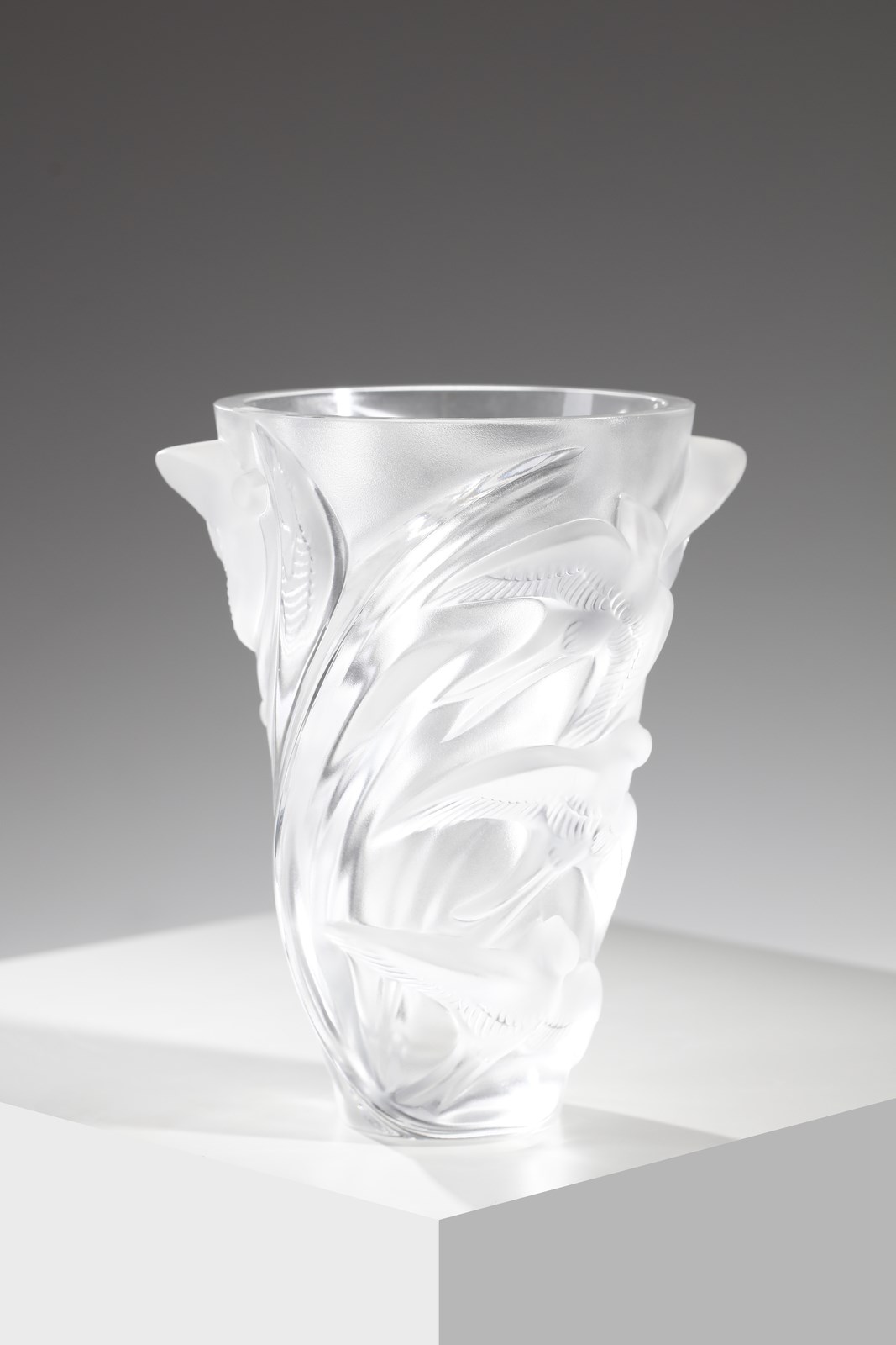 Vaso della serie Martinets in vetro bianco opalescente, con decoro di rondini