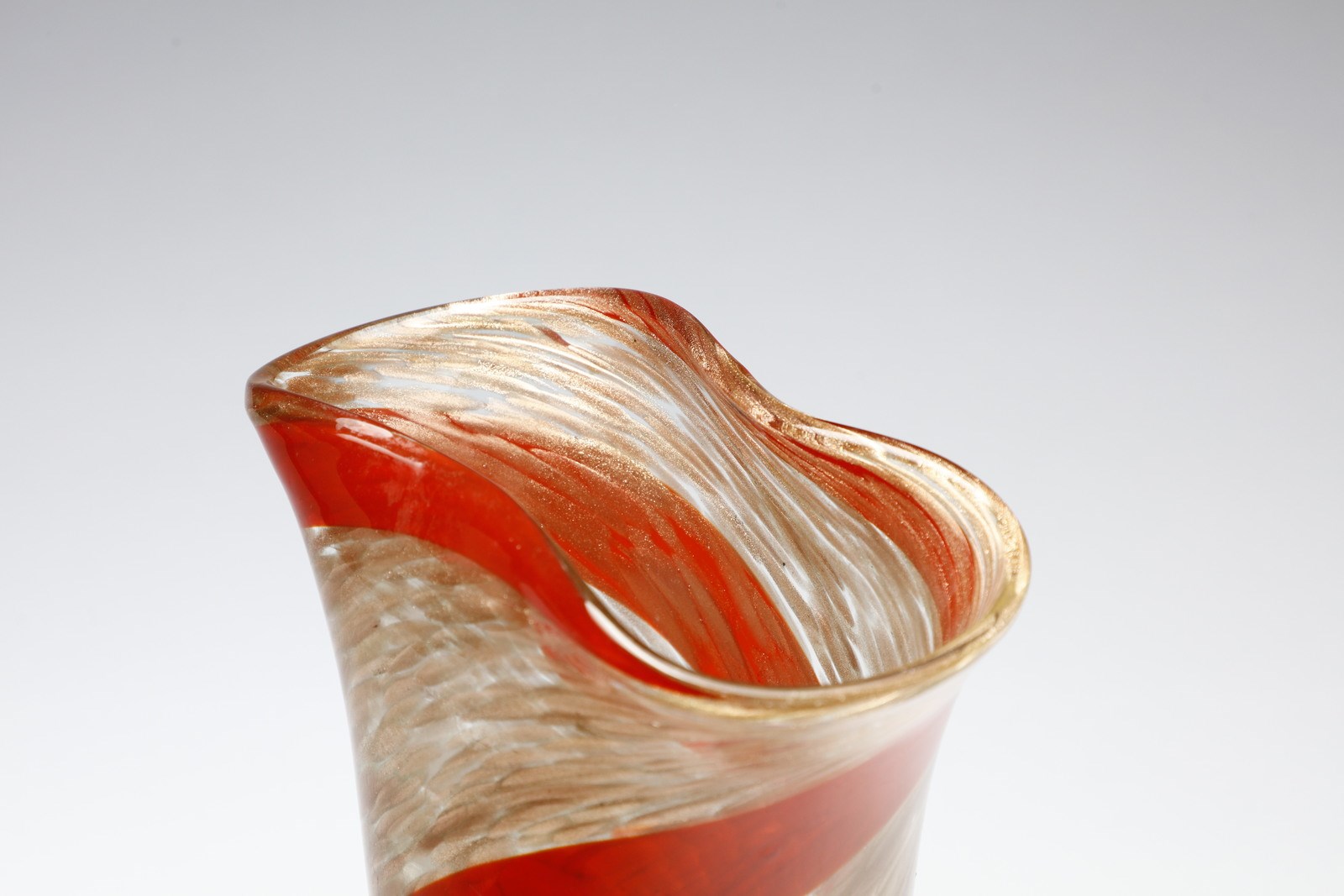 Vaso in vetro a mace avventurina a grandi fasce ritorte avventurina e rosso, [..]
