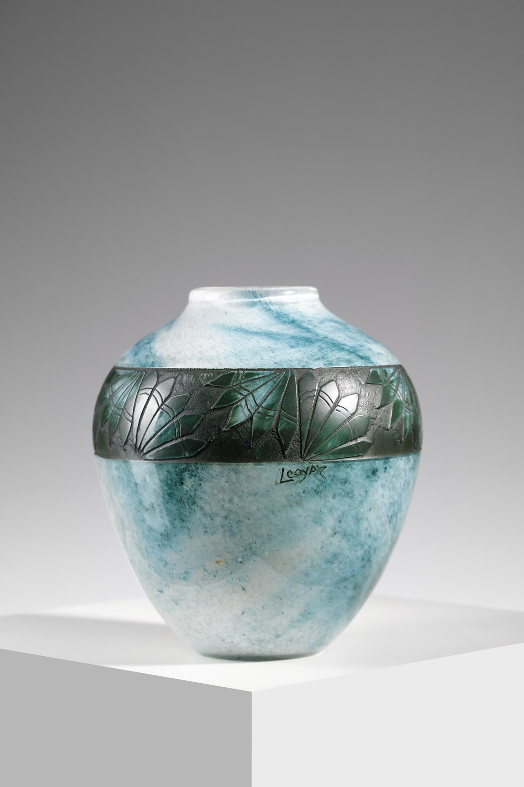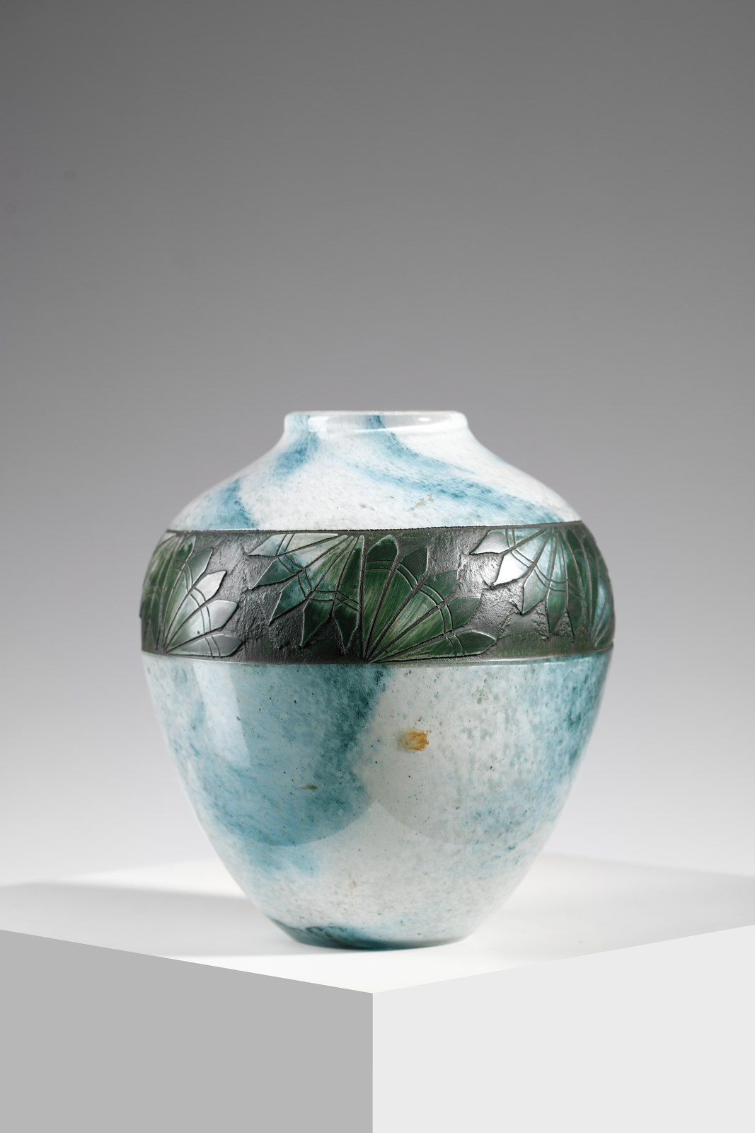 Vaso in vetro decorato con una fascia incisa all'acido con un motivo floreale, su [..]