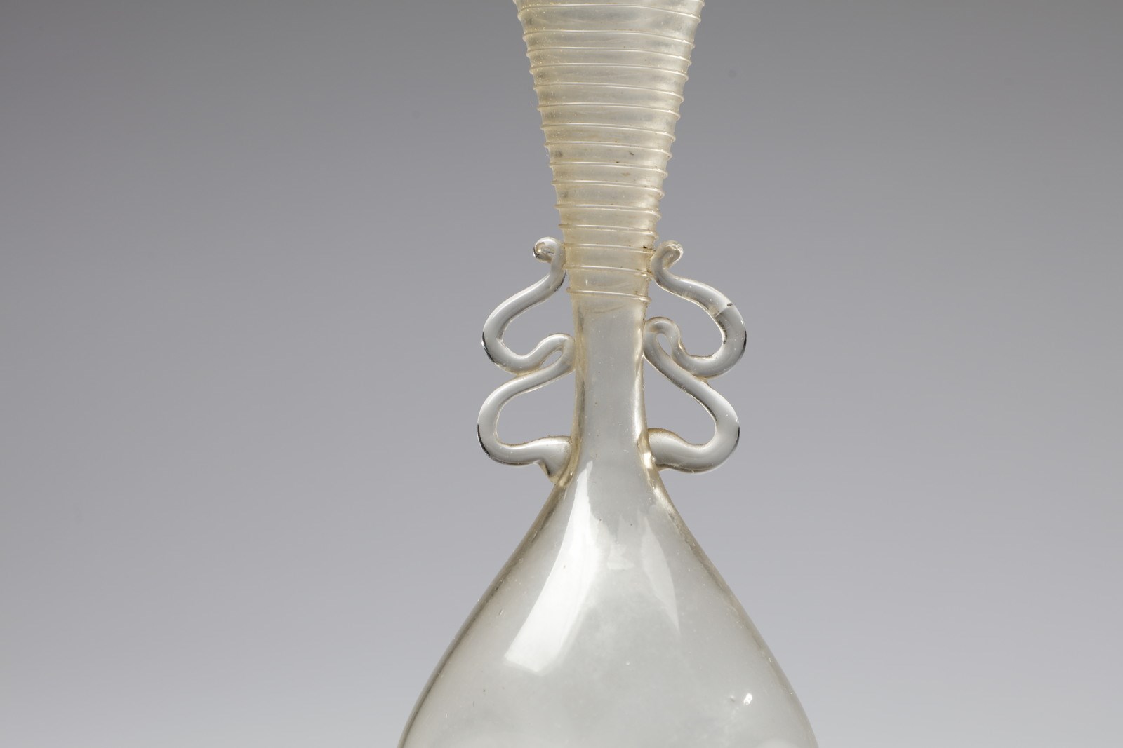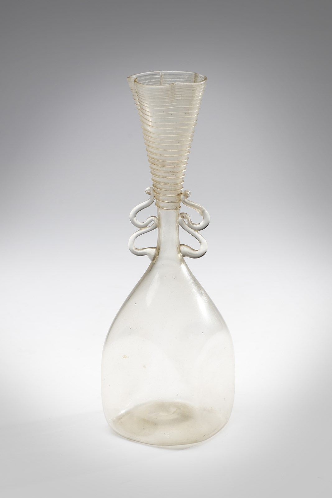 Vaso in vetro trasparente biansato decorato su collo con filamento a spirale, bocca [..]
