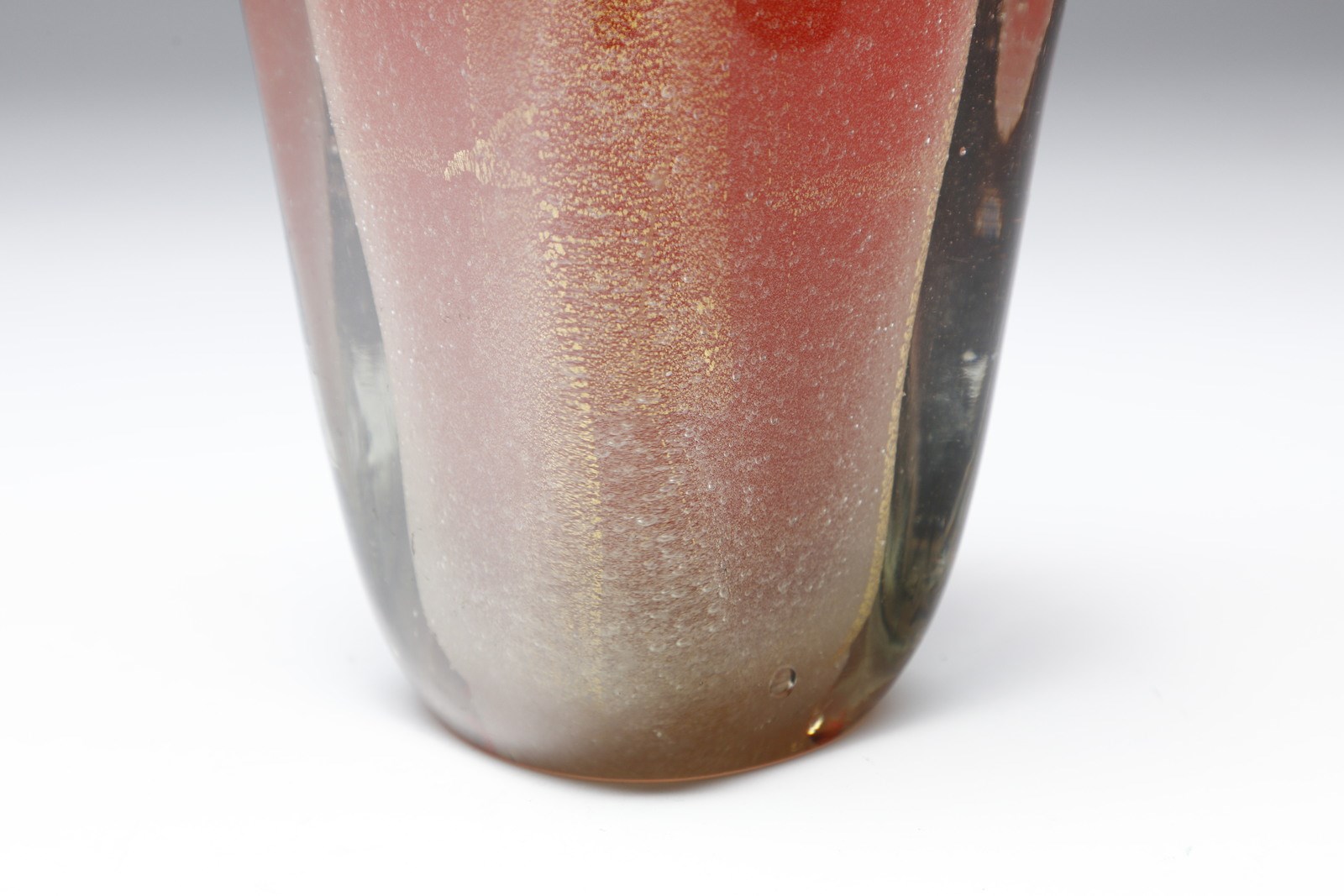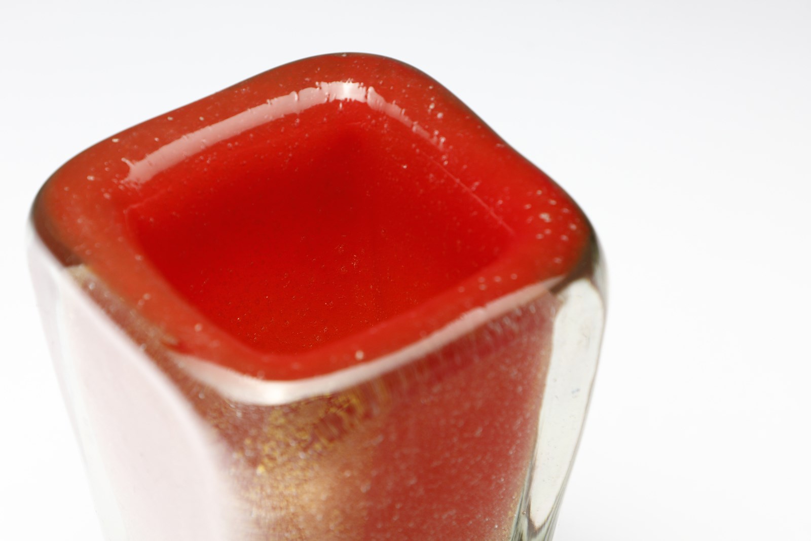 Vaso rastremato a sezione quadrata sommerso in color rosso e foglia oro per Seguso [..]