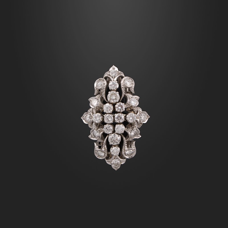 in oro bianco traforato con brillanti. Brillanti del peso complessivo di 2,70 ct ca., gr. 11,8. Misura 16