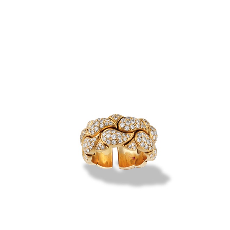 in oro giallo, fascia a elementi a goccia con pavè di brillanti del peso complessivo di 2,30 ct, gr. 20. Allegata garanzia della Maison. Misura regolabile Numero di matricola: 9236415 Firmato: Chopard