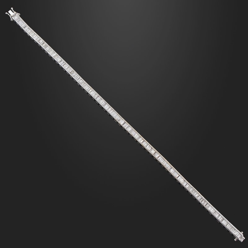 in oro bianco a rivière di diamanti taglio baguette del peso complessivo di 5,00 ct ca., gr. 18,9. Lunghezza 20 cm