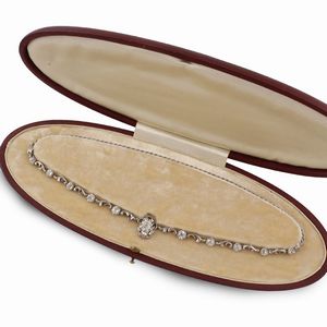 girocollo in oro bianco con diamante taglio navette centrale del peso di 1,80 ct ca., rivière parziale di brillanti [..]
