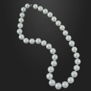 di perle coltivate South Sea bianche a scalare, diametro 10,5/14,00 mm, con chiusura in oro bianco, gr. 91 ca. [..]