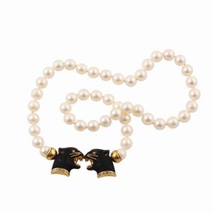 un filo di perle coltivate 8,5 mm con chiusura raffigurante due teste di pantera in oro giallo e brunito con [..]