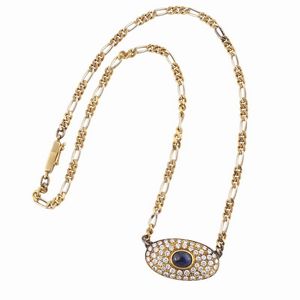 girocollo in oro giallo e bianco, elemento centrale a forma ovale con zaffiro cabochon e pavè di brillanti del [..]