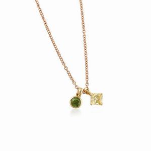 in oro rosa con gemma sintetica gialla taglio radiant e olivina (peridot) montati in oro giallo, gr. 12,9. Lunghezza [..]