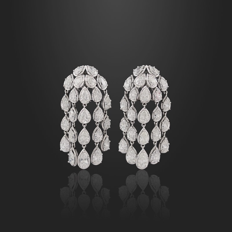 in oro bianco con diamanti taglio a goccia pendenti del peso complessivo di 6,00 ct ca., gr. 14,6.