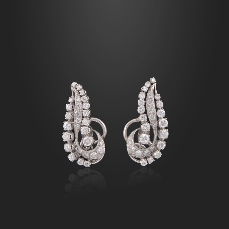 in platino a forma di goccia con diamanti del peso complessivo di 1,50 ct ca., gr. 8,2.
