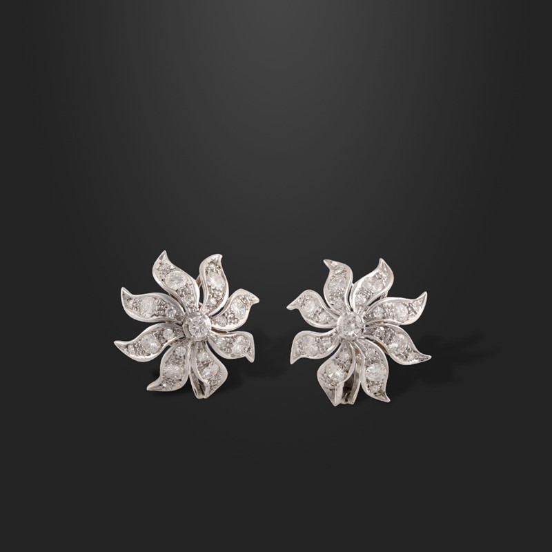 in oro bianco a motivi floreali con brillanti del peso complessivo di 2,00 ct ca., gr. 11,6.
