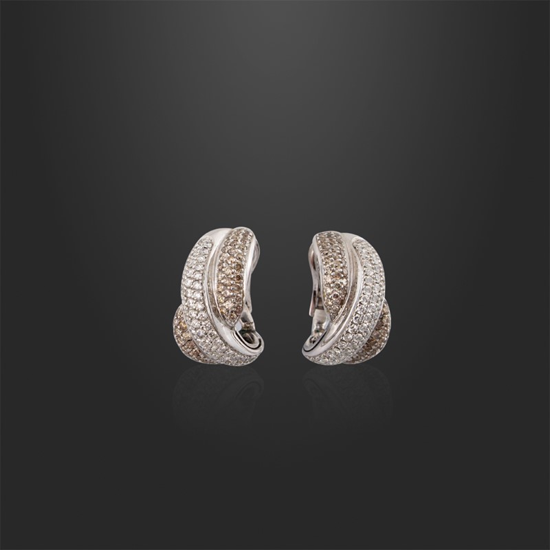 in oro bianco a treccia bombata con pavč di brillanti incolore e “brown”. Brillanti incolore e “brown” del peso complessivo di 4,80 ct ca. gr. 20,6.