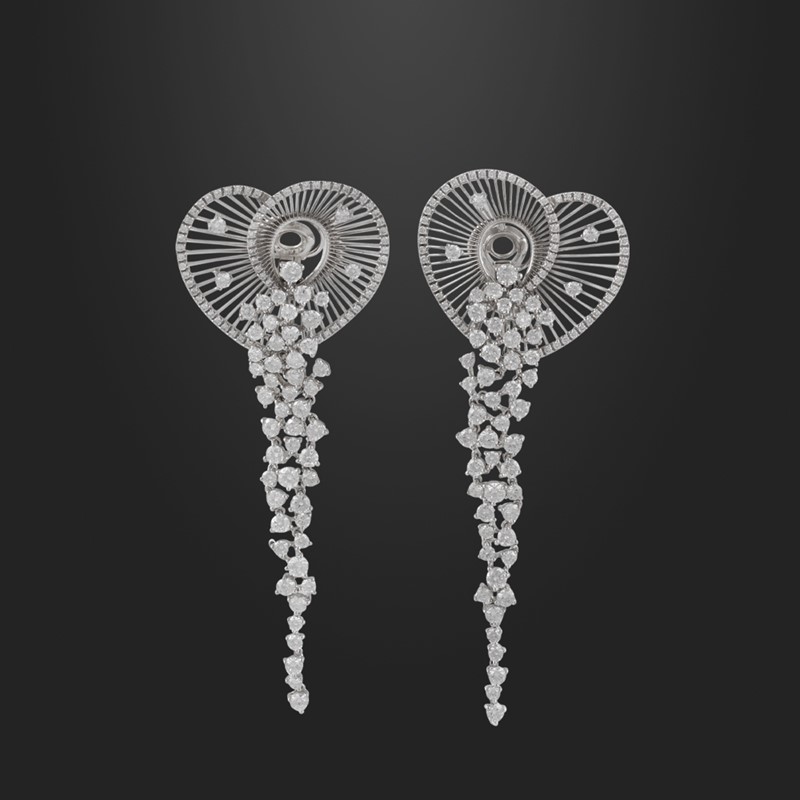 in oro bianco, forma a cuore, brillanti al centro disposti a cascata del peso complessivo di 6,00 ct ca., gr. 27,5.