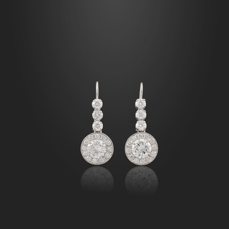 in oro bianco a forma circolare con brillanti centrali del peso complessivo di 2,00 ct ca., brillanti a contorno del peso complessivo di 1,00 ct ca., gr. 6,5.