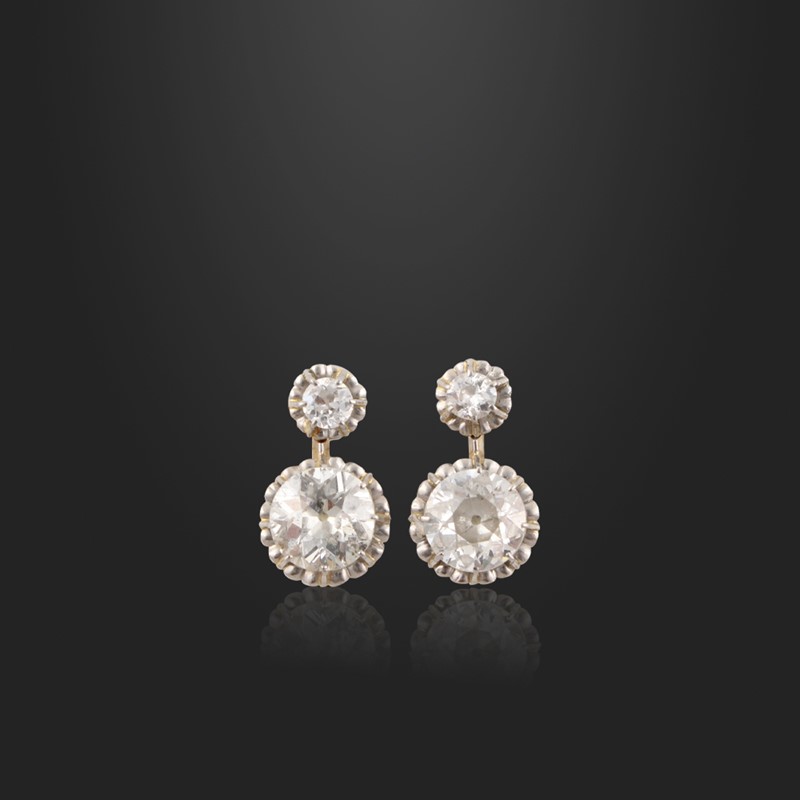 in oro giallo con diamanti taglio antico europeo del peso complessivo di 2,70 ct ca., gr. 3,4.