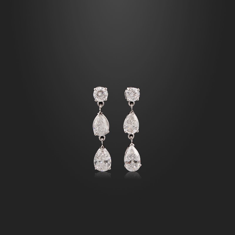 in oro bianco con brillanti, pendenti con diamanti forma a goccia. Diamanti del peso complessivo di 2,70 ct ca., gr. 2,8.