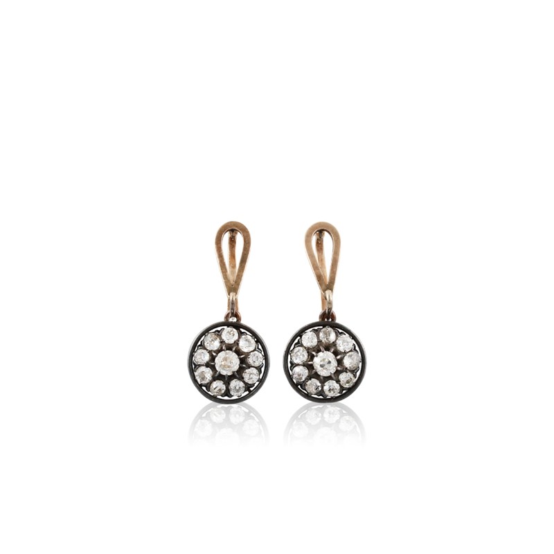 in argento e oro a rosone con diamanti del peso complessivo di 2,30 ct ca., gr. 6,6. Fine XIX-Inizi XX Secolo