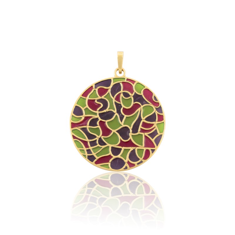 in oro giallo a forma tonda con smalti policromi, gr. 24,8.