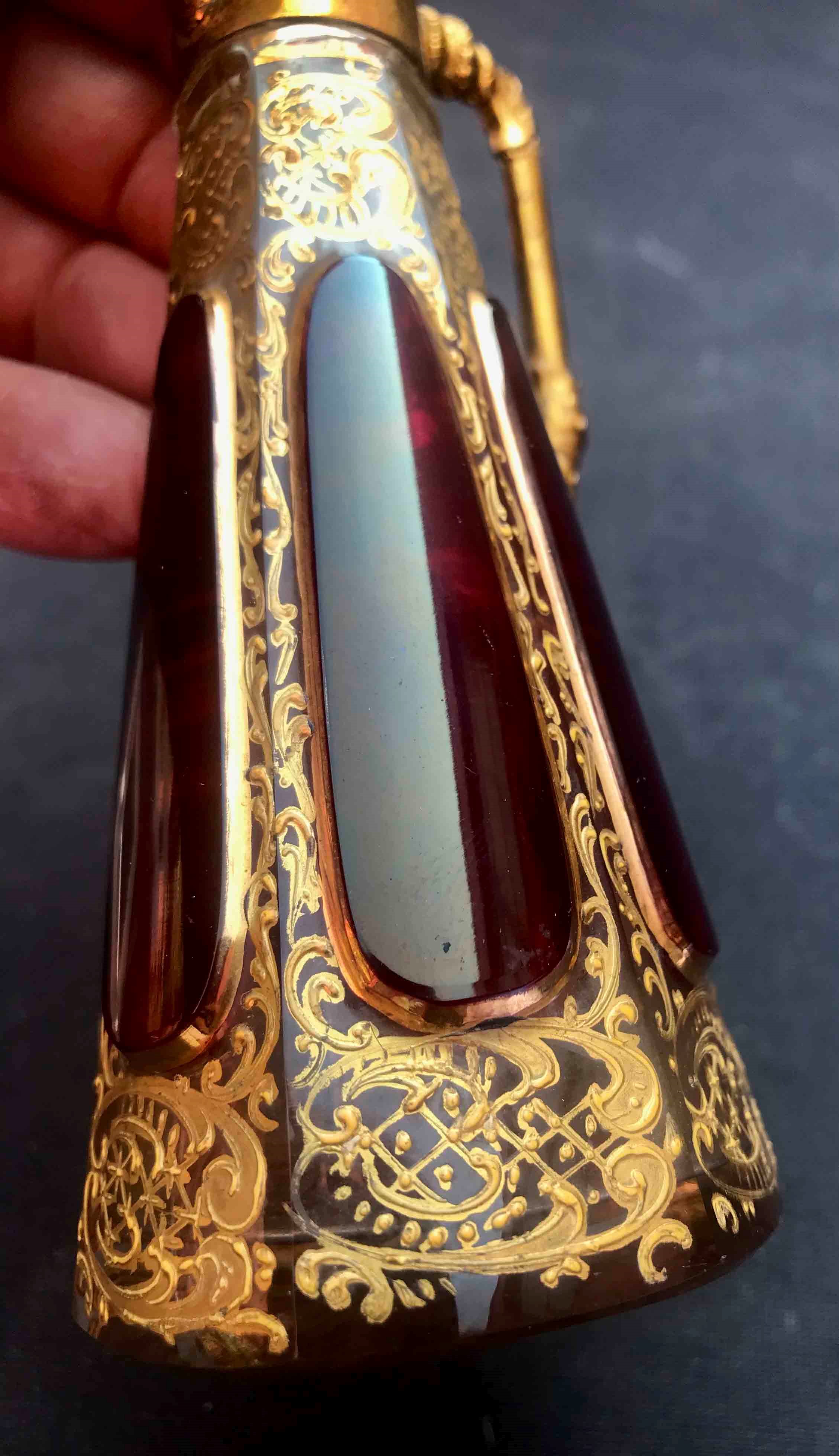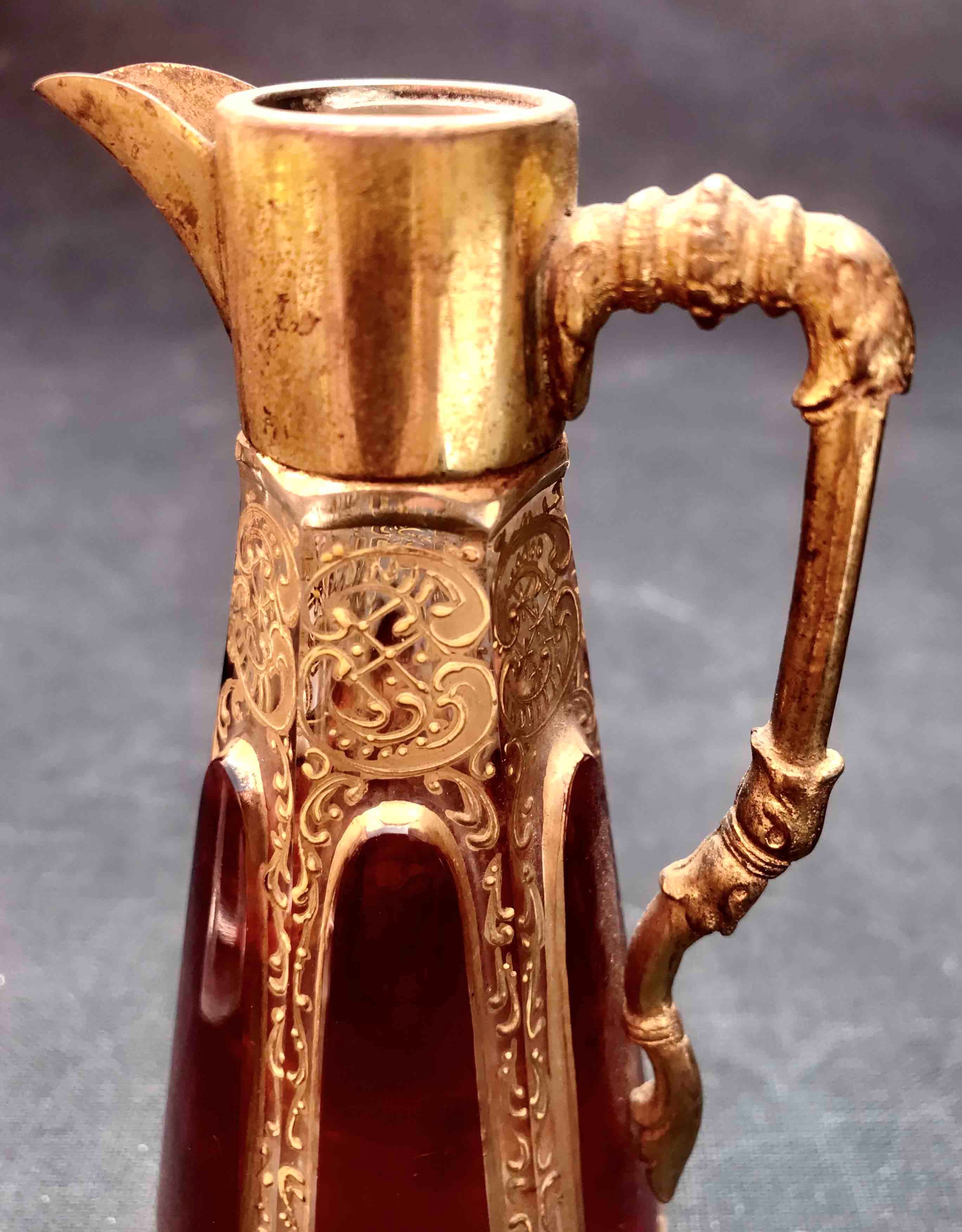 Due bottigliette in cristallo molato e dorato. Vienna o Boemia